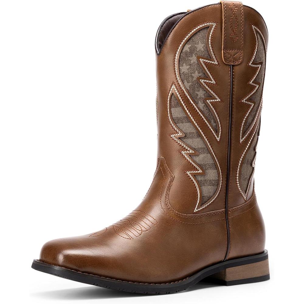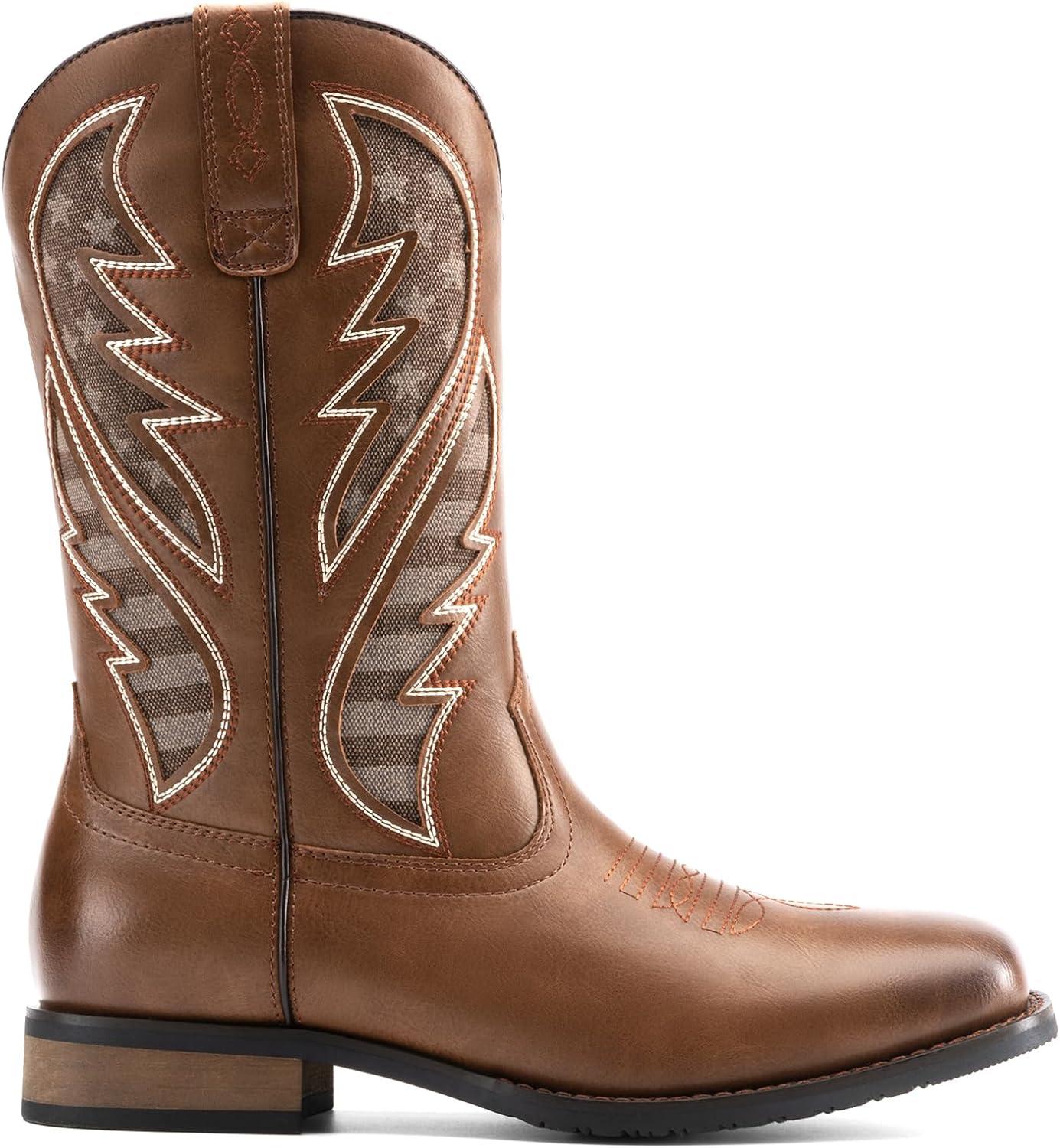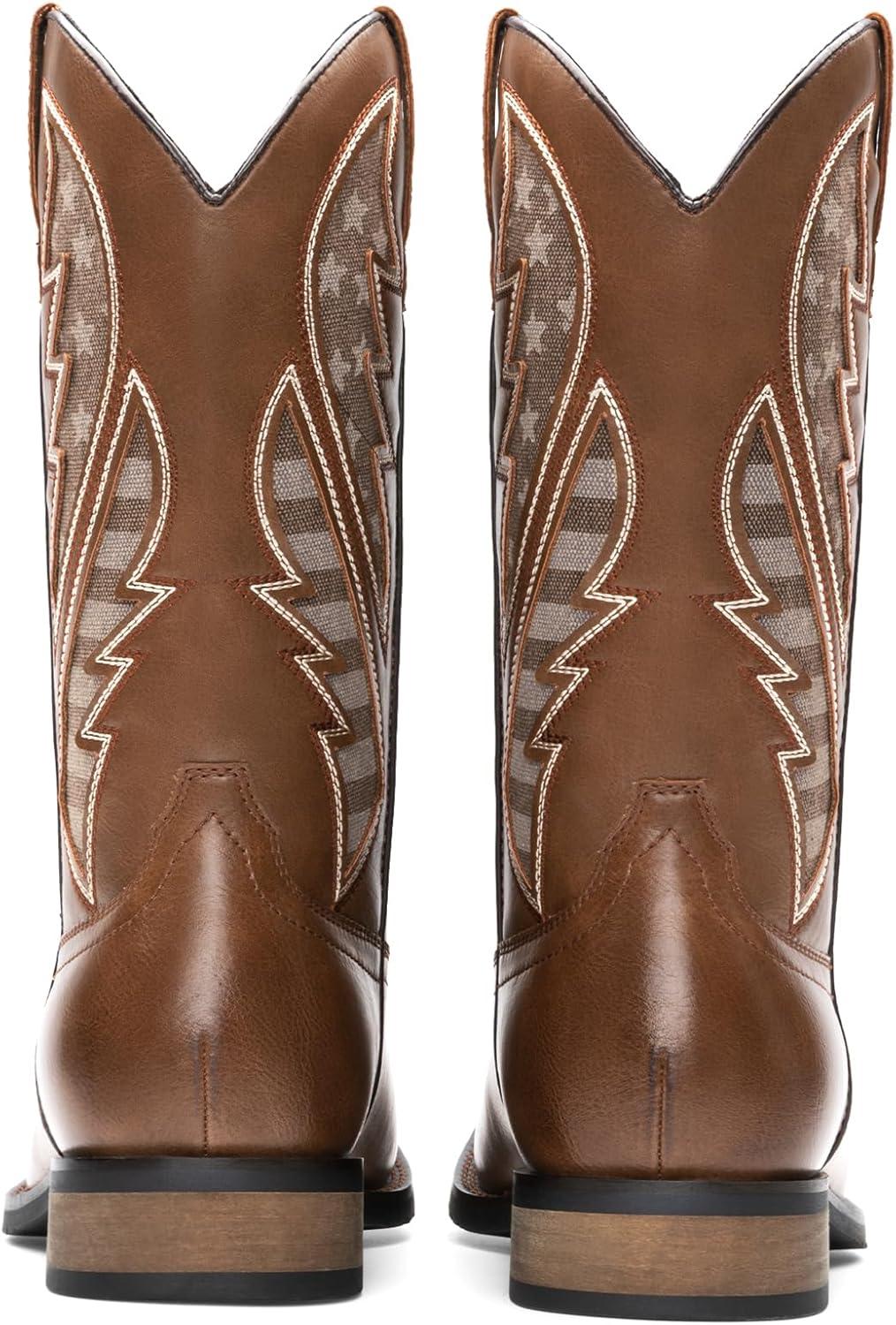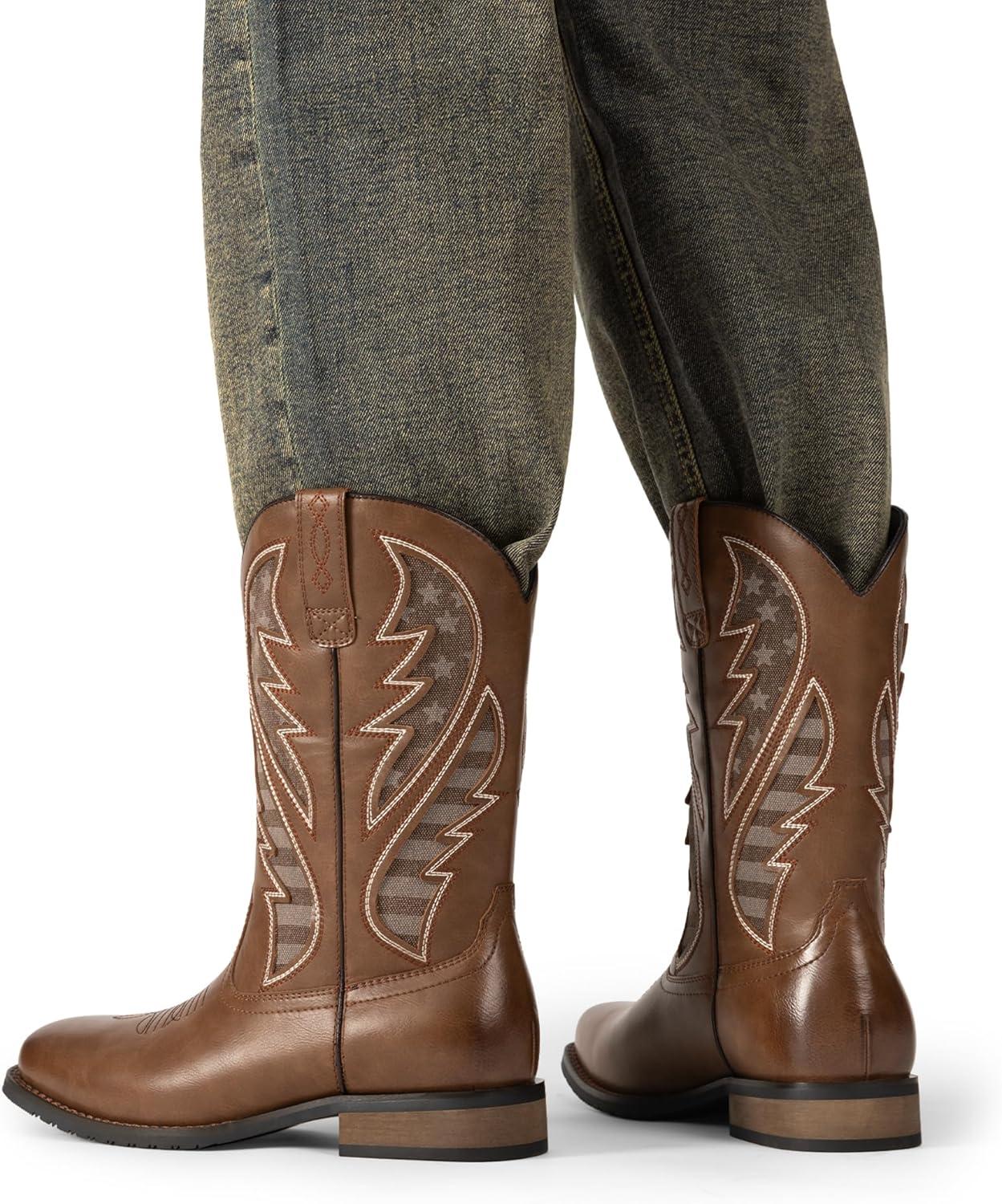 Bruno Marc Men's Durable Cowboy Classic Slip on Western Boots with Chic Embroidered Durable Short Fashionable Western Boots(Brown)