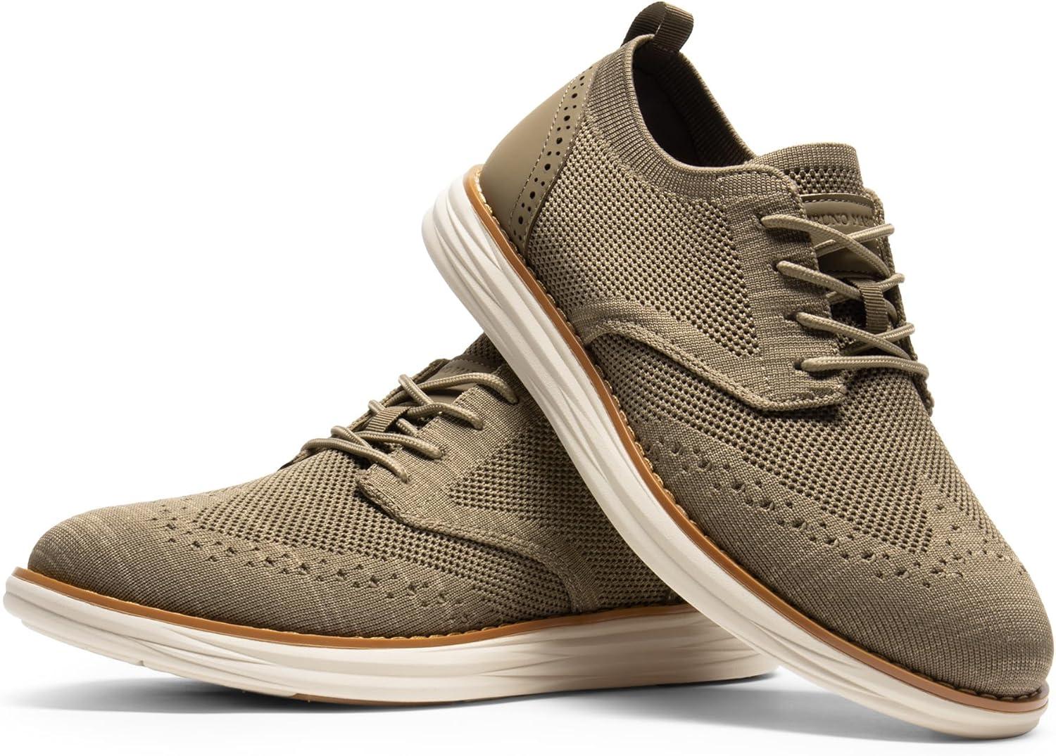 Bruno Marc Men’s KnitFlex Craft Mesh Oxfords Sneakers Casual Dress Lace-Up Lightweight Walking Shoes(6-khaki)