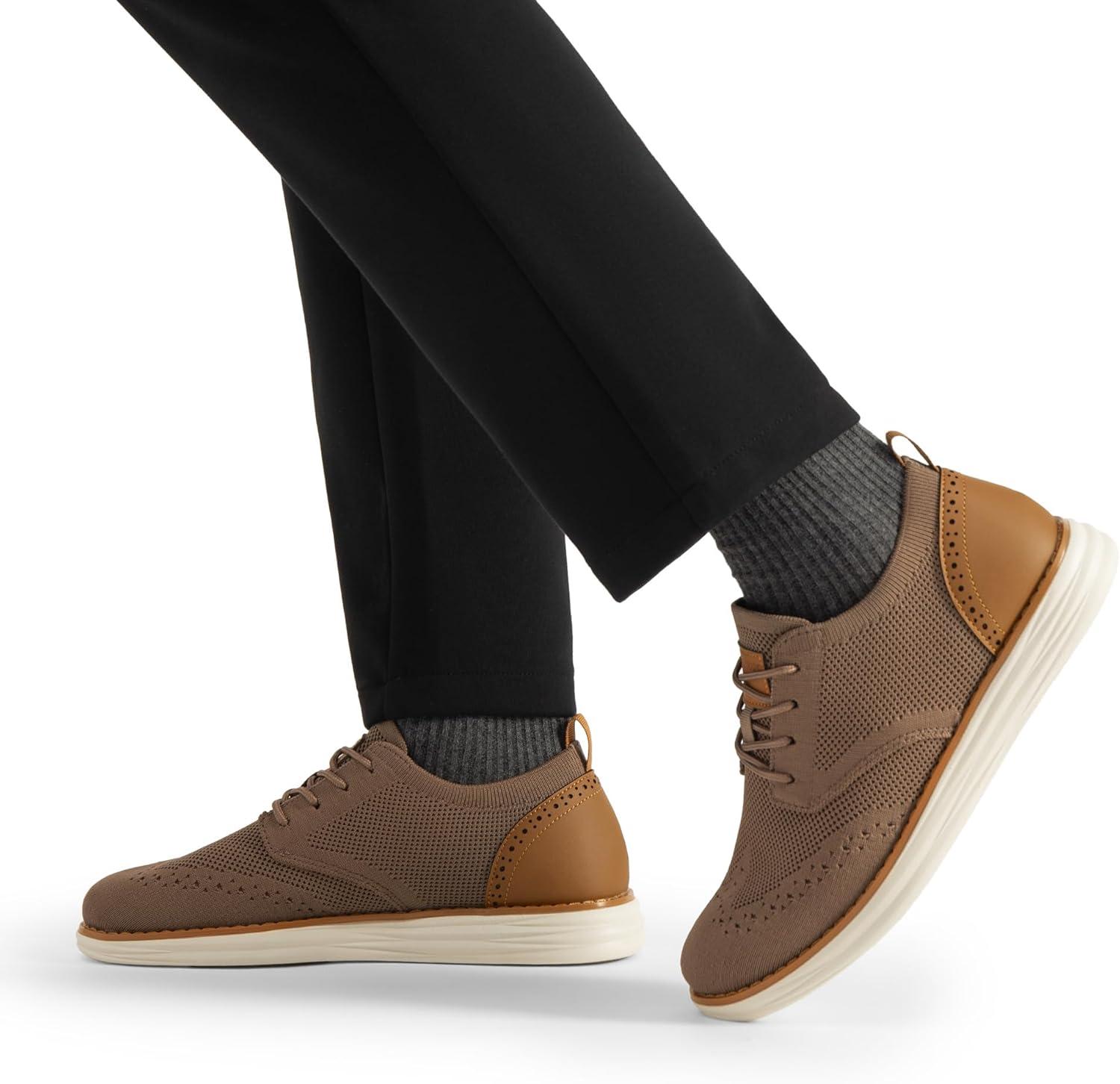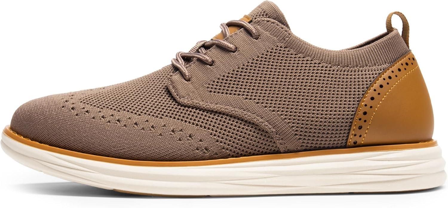 Bruno Marc Men’s KnitFlex Craft Mesh Oxfords Sneakers Casual Dress Lace-Up Lightweight Walking Shoes(6-light Brown)