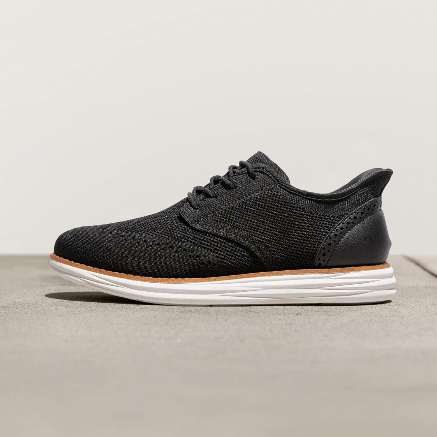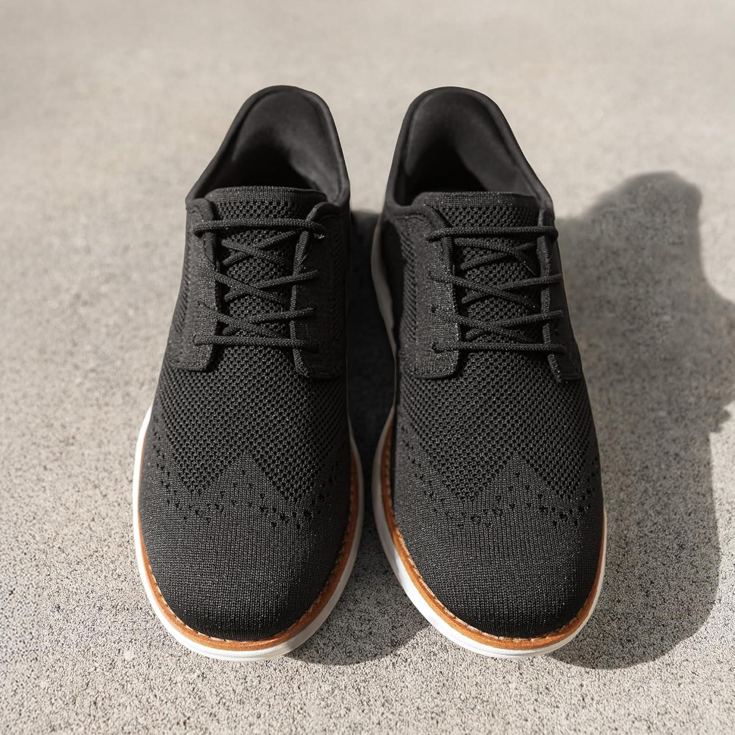 Bruno Marc Men’s KnitFlex Craft Mesh Oxfords Sneakers Casual Dress Lace-Up Lightweight Walking Shoes(Black-hands Free)
