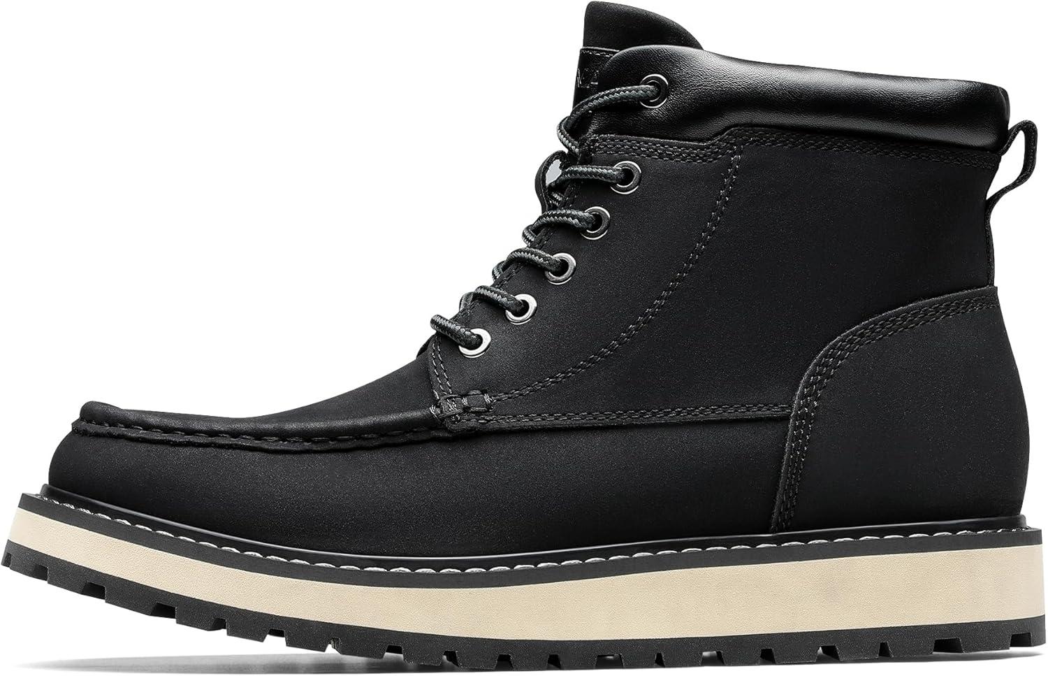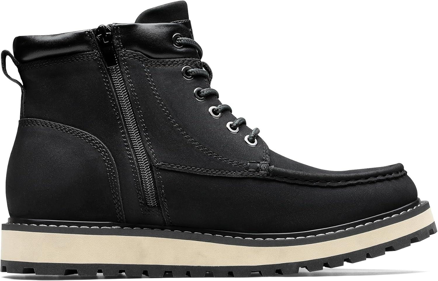 Bruno Marc Men’s Moc Toe Boot Fashion Comfort Casual Wedge Boots(Black)