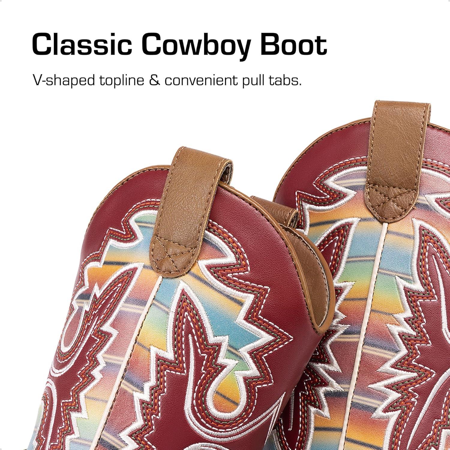 DREAM PAIRS Boys Girls Cowboy Boots Toddler Mid Calf Western Boots Square Toe Riding Boots for Kids(Brown/Multi)
