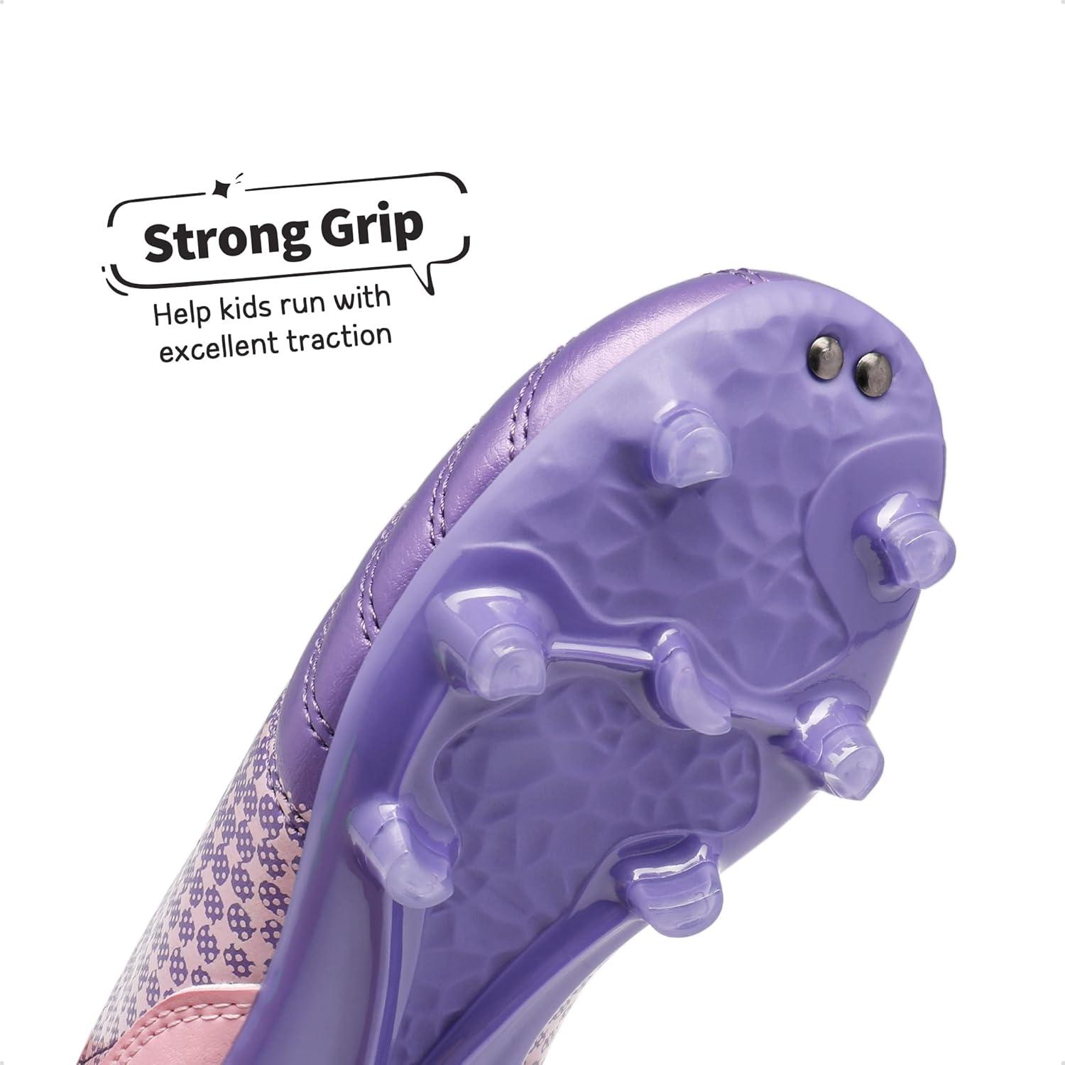 DREAM PAIRS Boys Girls Outdoor Sport Football Shoes Soccer Cleats for Little/Big Kid(Light/Purple/Pink)