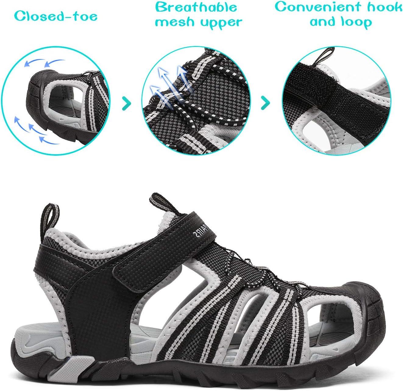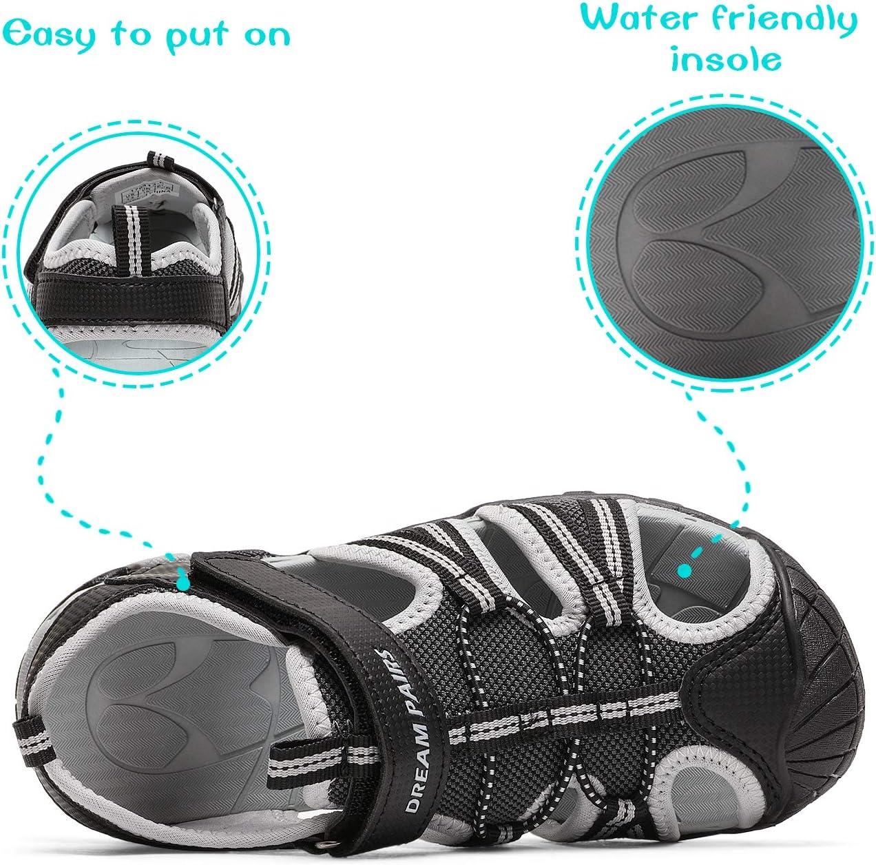 DREAM PAIRS Boys Girls Outdoor Summer Sport Athletic Sandals for Toddler/Little/Big Kid(Black/Light/Grey)