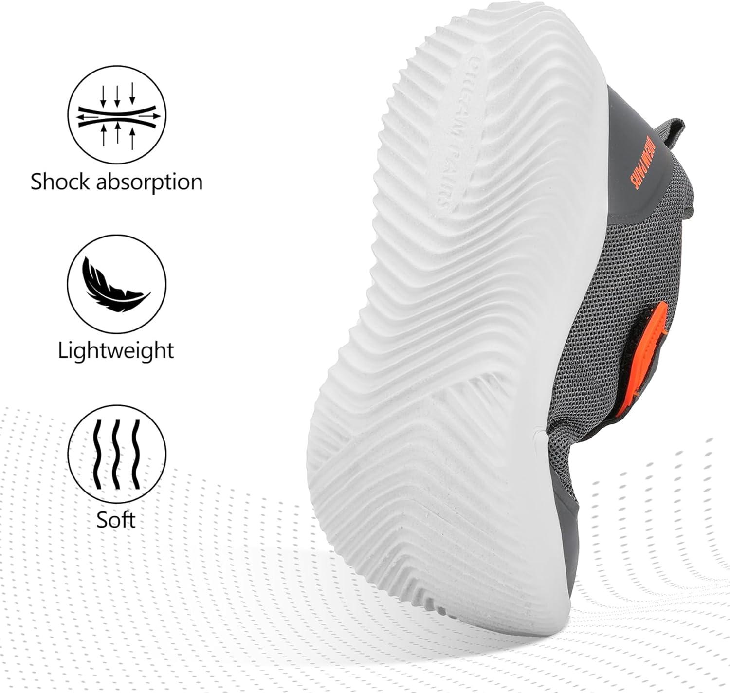DREAM PAIRS Boys Girls Shoes Kids Tennis EZ-Ons BreezeRunners Running Sneakers(Grey/Orange)