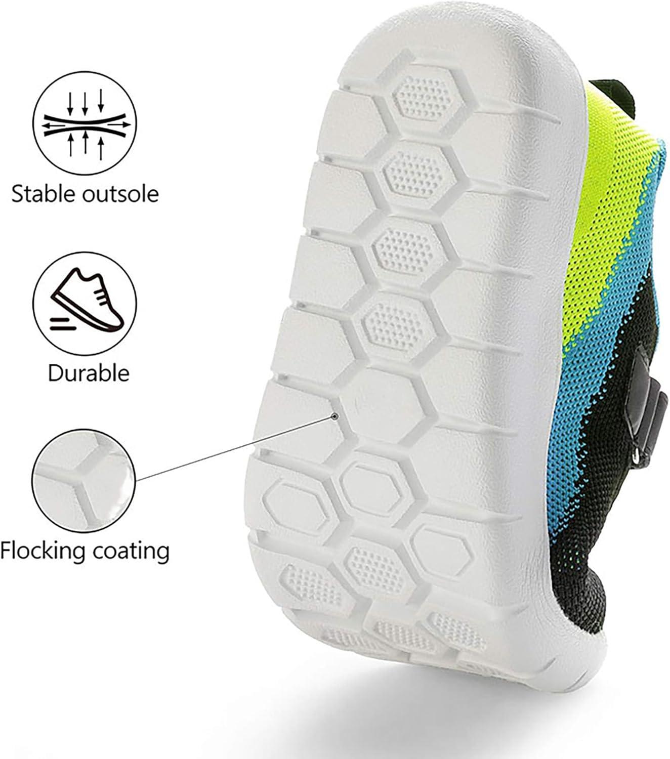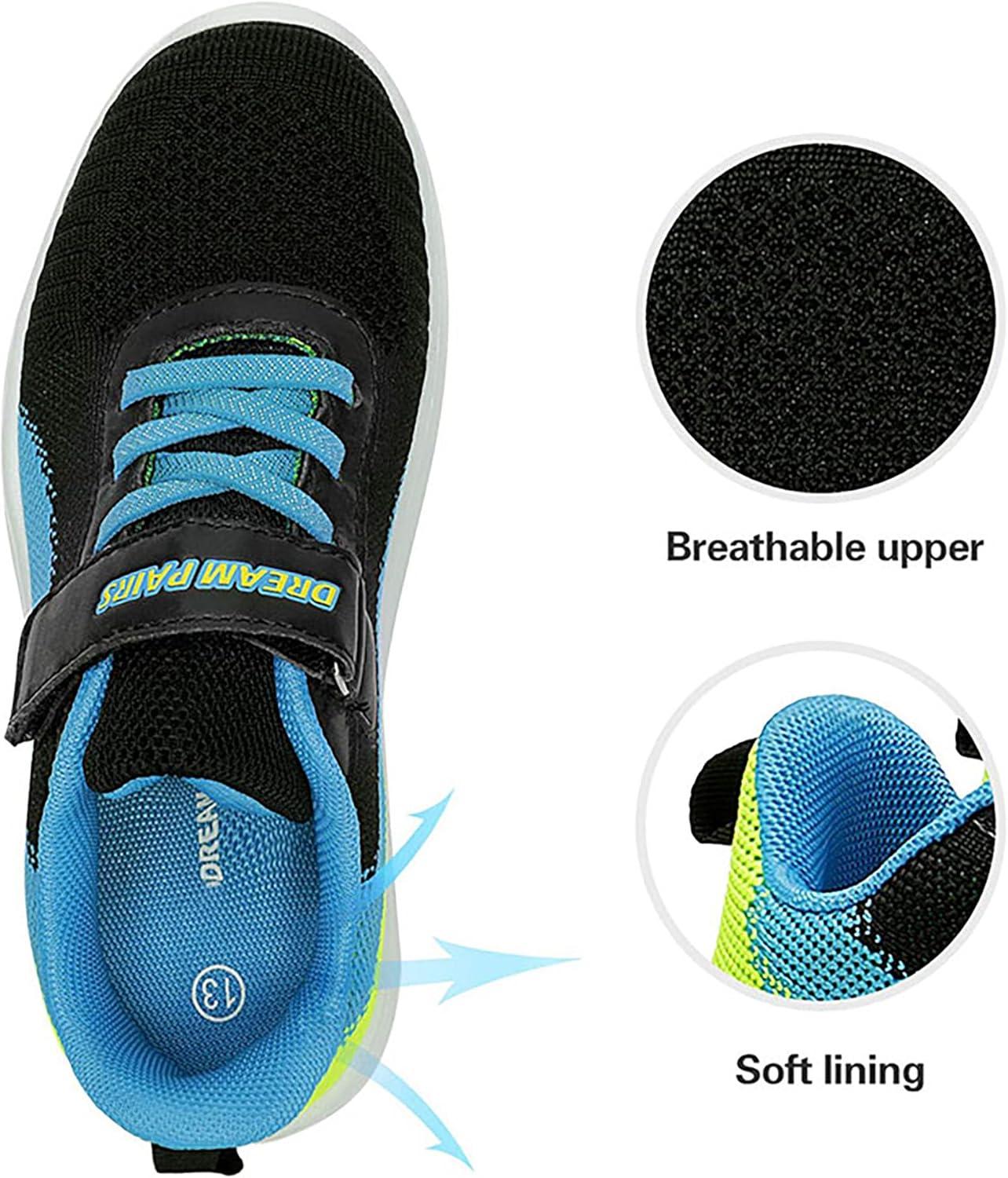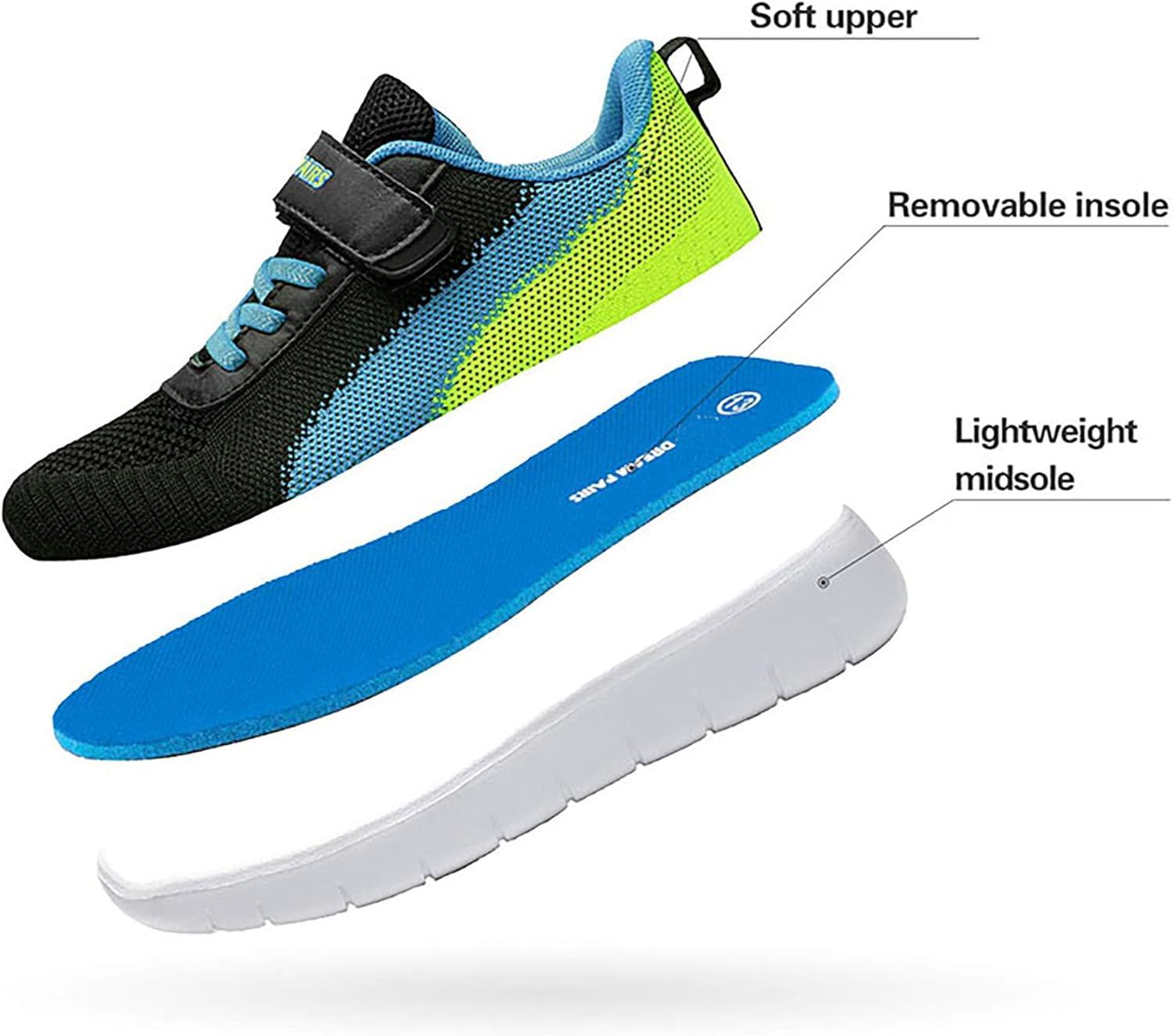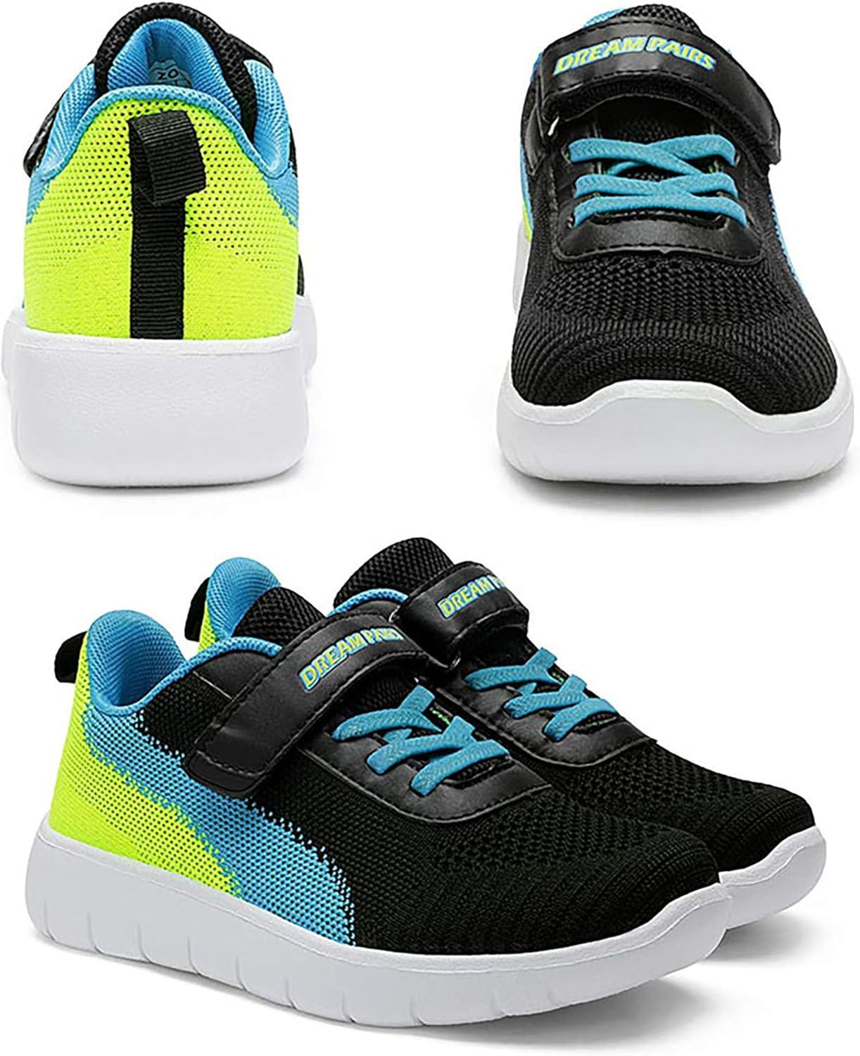 DREAM PAIRS Boys Girls Shoes Kids Tennis EZ-Ons MagicZips Athletic Running Walking Barefoot Zero Drop Sneakers(Black/Blue/Neon/Green)