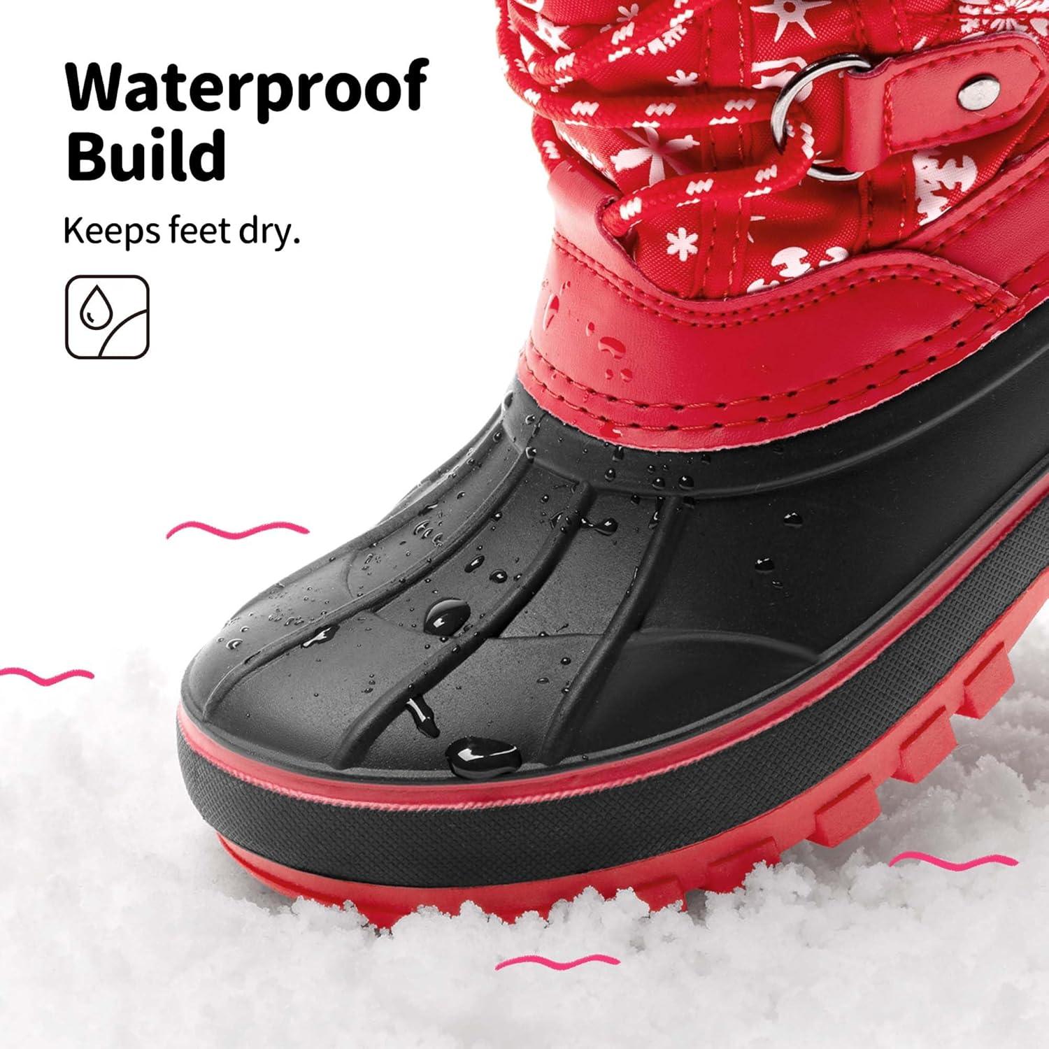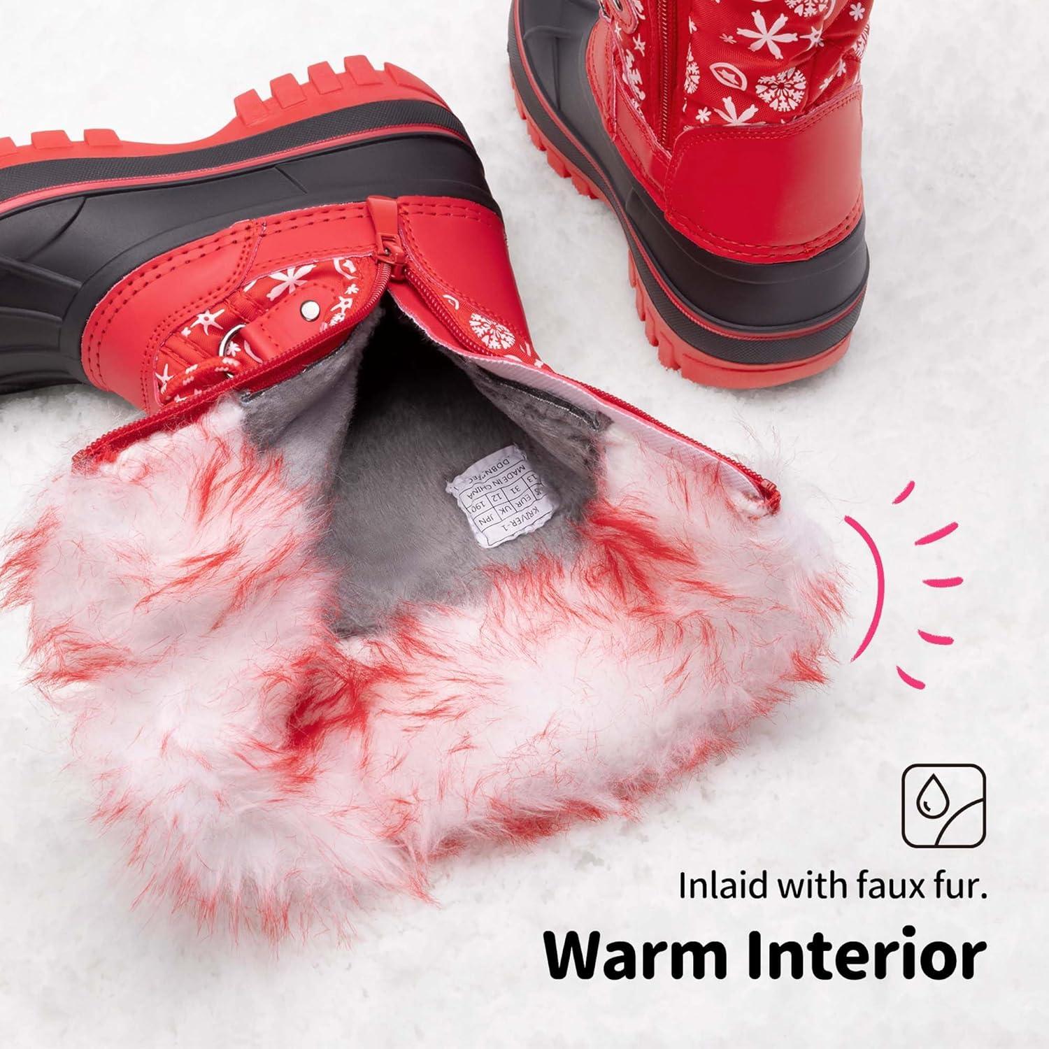 DREAM PAIRS Boys Girls Snow Boots Water-Resistant Outdoor Warm Cozy Anti-Slip Mid Calf Faux Fur Lining Insulated Winter Shoes for Little/Big Kids(Red/Black)
