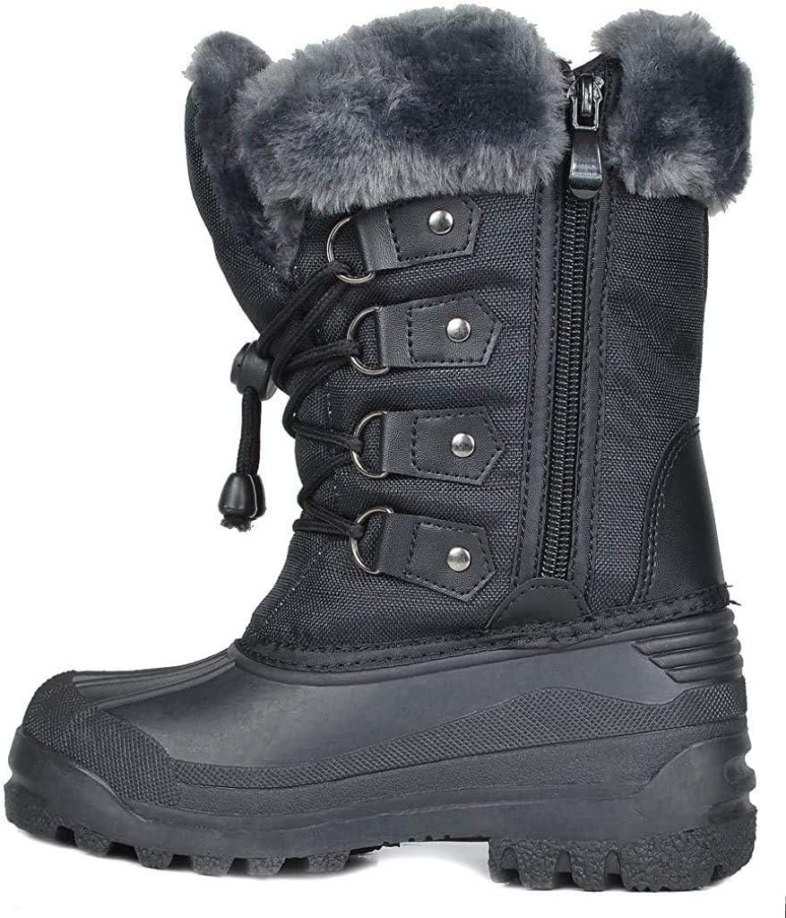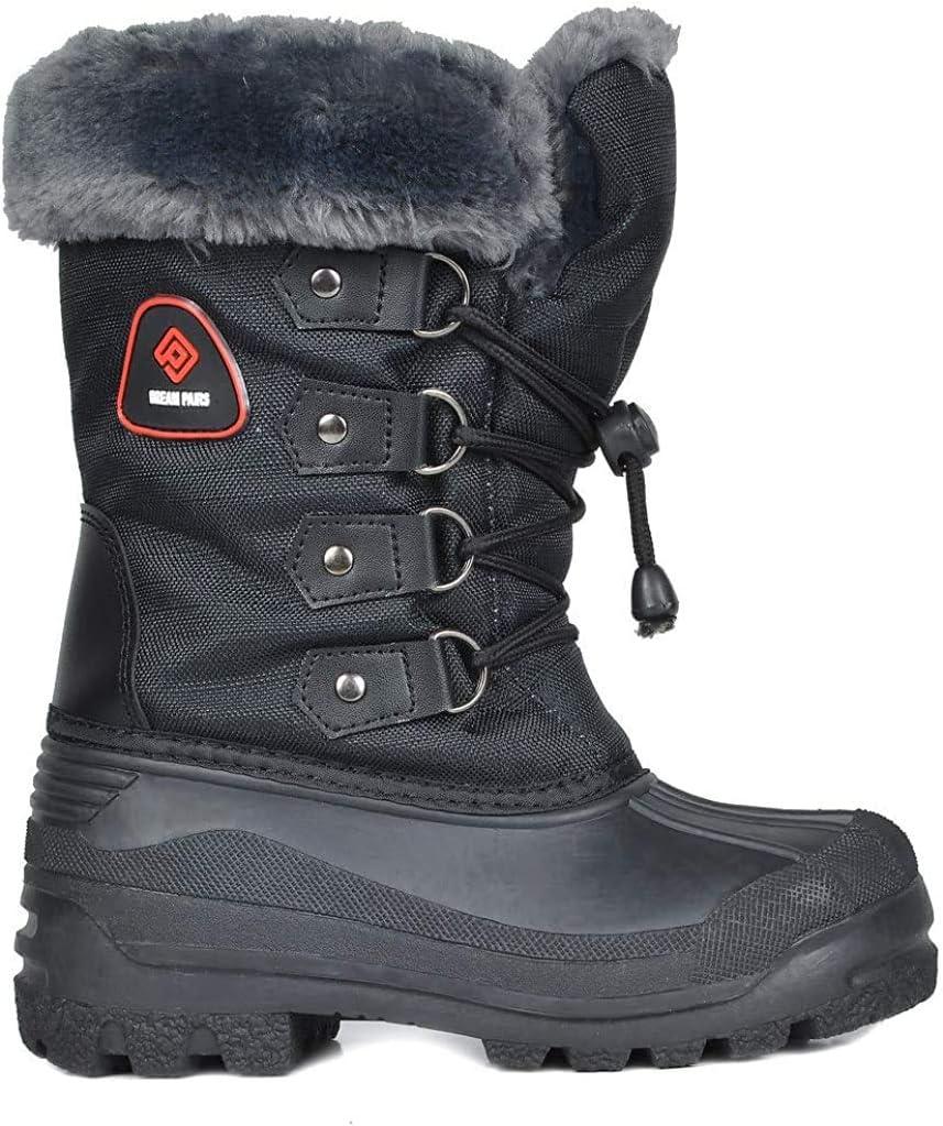 DREAM PAIRS Boys & Girls Waterproof Winter Snow Boots for Little Kid/Big Kid(Black)
