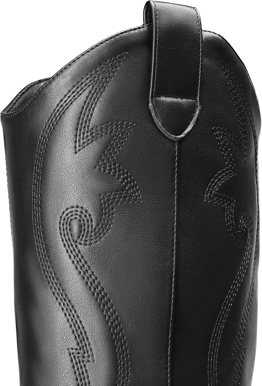 DREAM PAIRS Cowboy Boots For Women, Comfortable Pull On Zipper Chunky Heel Pointed Toe Embroidered Western Cowgirl Knee High Boots(Black)
