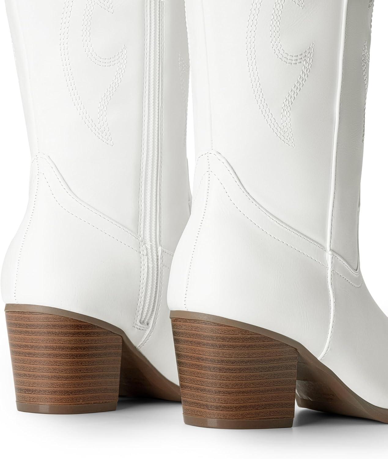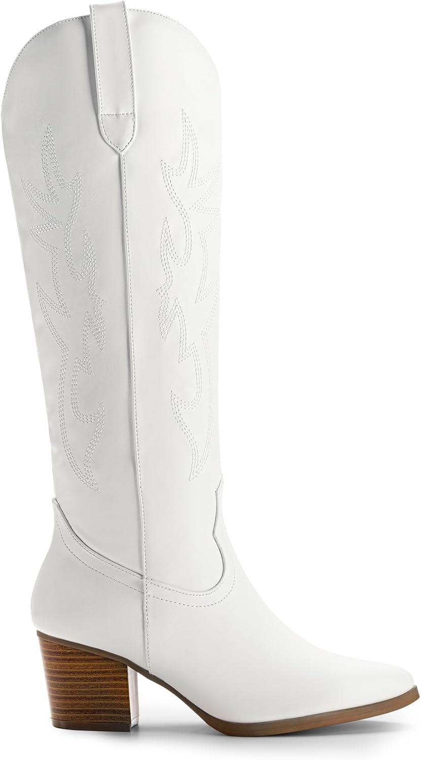imageDREAM PAIRS Cowboy Boots for Women Cowgirl Knee High Boots Comfortable Pull On Zipper Chunky Heel Pointed Toe Embroidered Western BootsWhite