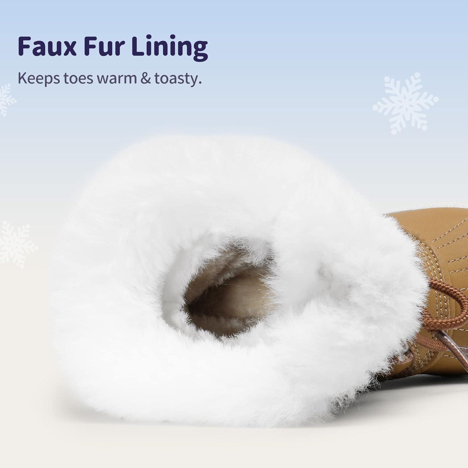 DREAM PAIRS Cozy Kids Snow Boots, Warm & Water-Resistant Winter Boots with Faux Fur for All-Day Play, Non-Slip Mid Calf Boots(Tan/White)