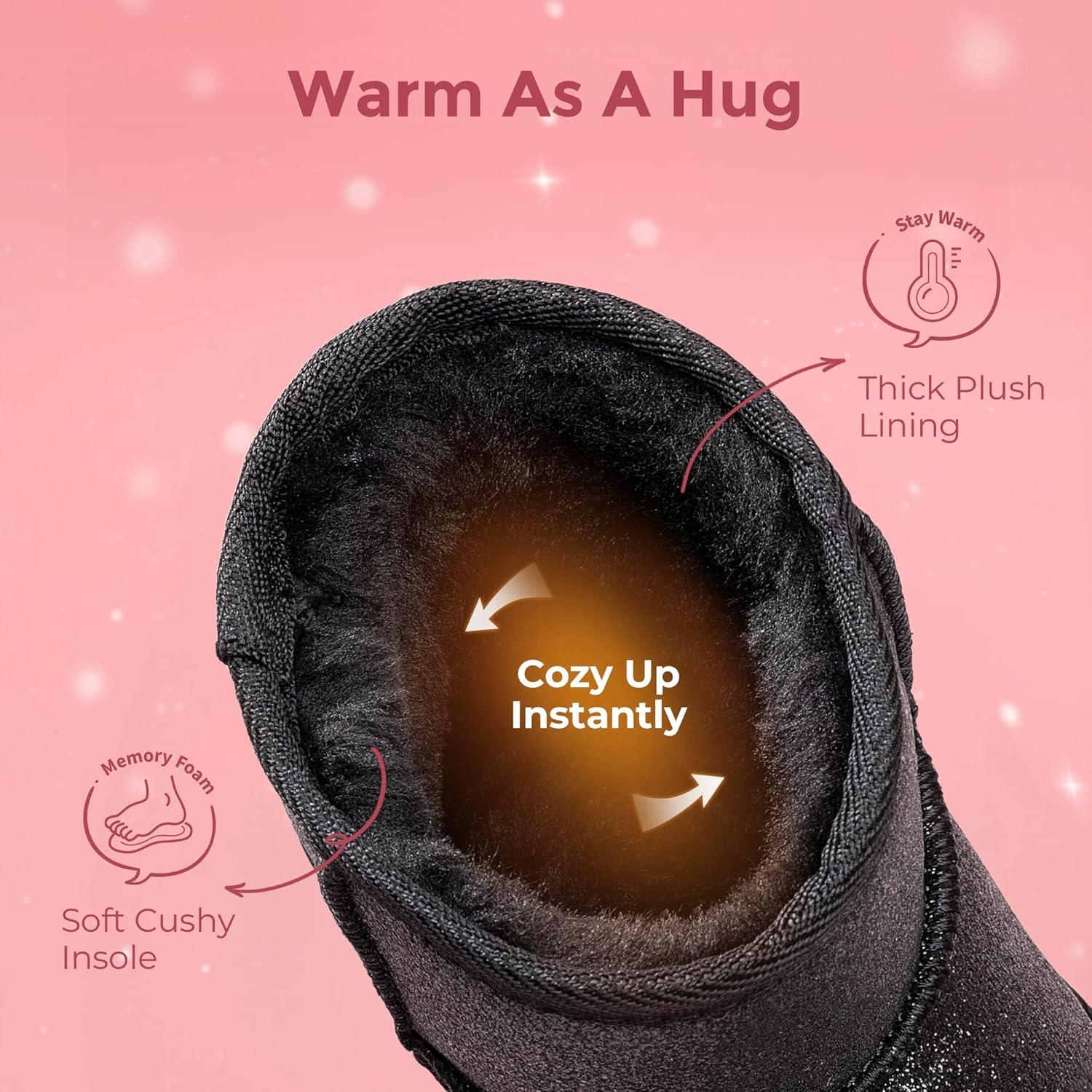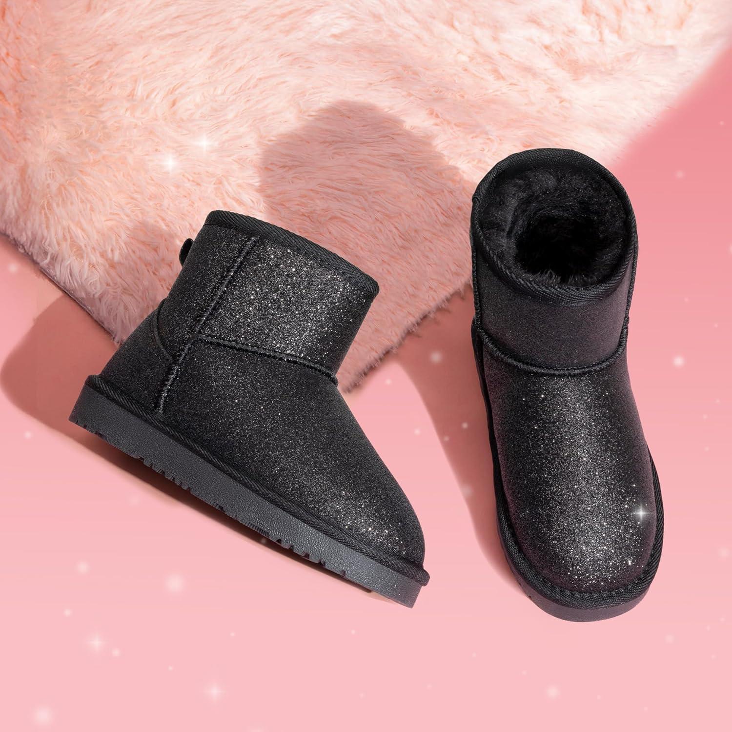DREAM PAIRS Girls Boys Boots Kids Winter Ankle Faux Fur Lined Snow Shoes FuzzyClassic Kid's Low Boot for Toddler/Little Kid/Big Kid(Black-glitter)