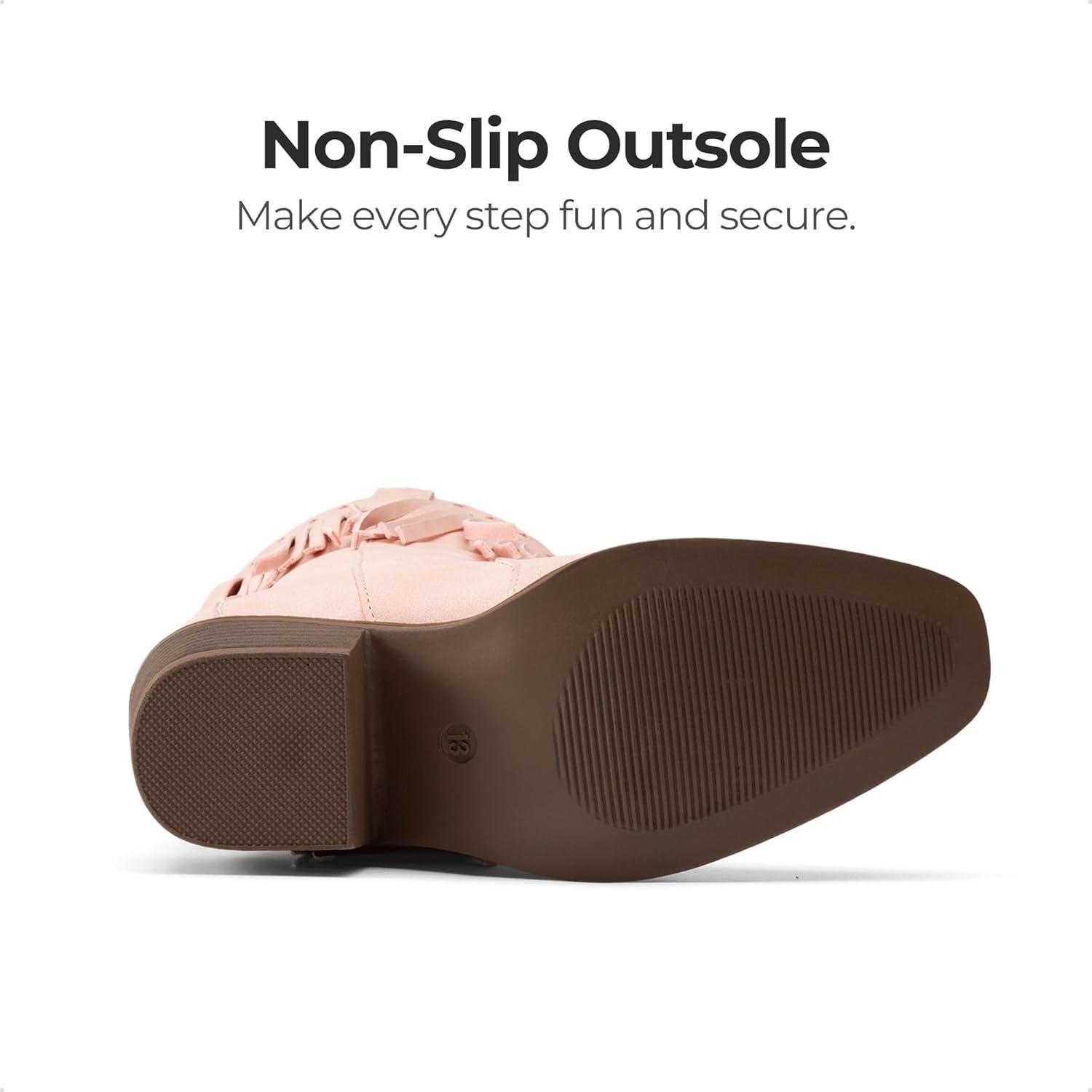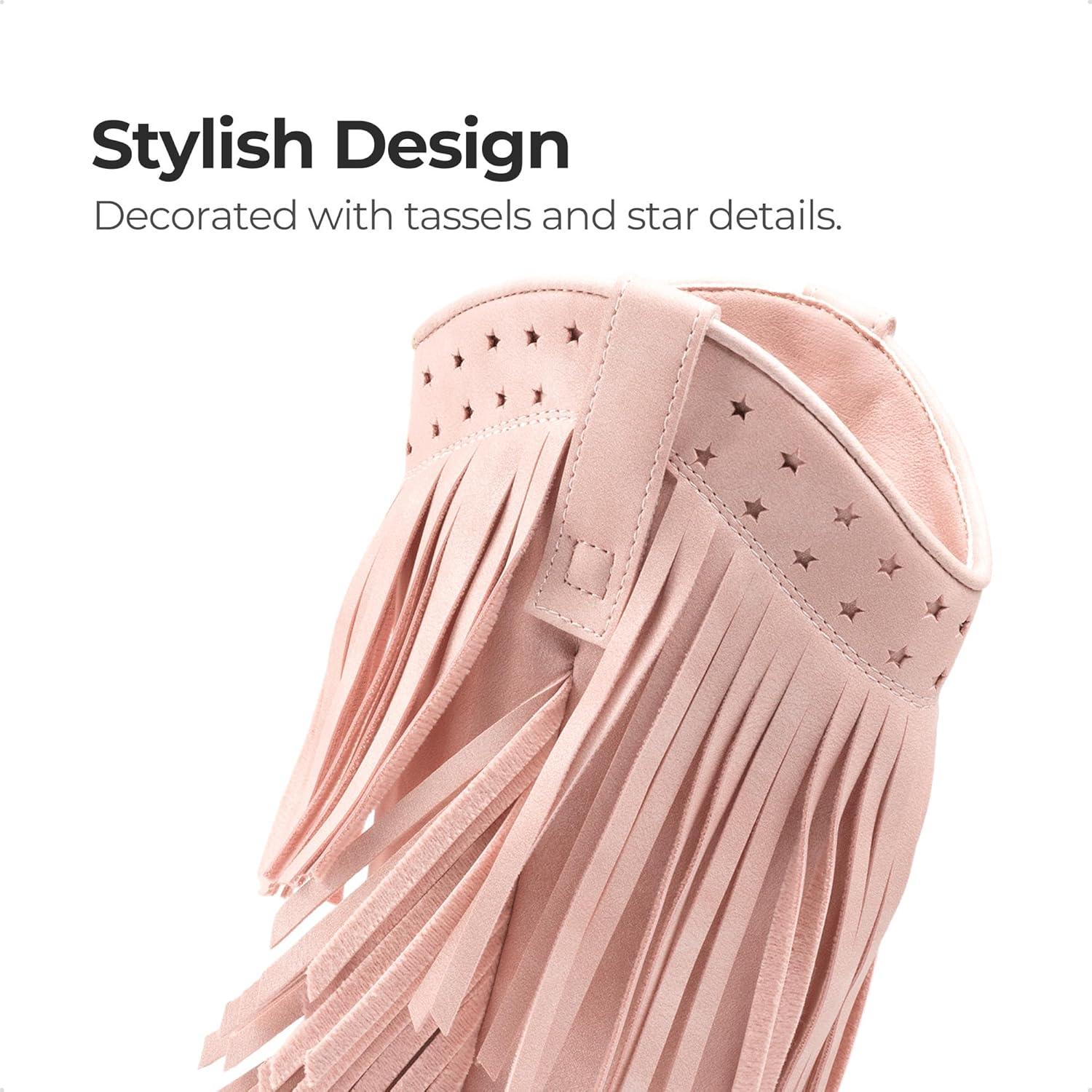 DREAM PAIRS Girls Cowboy Boots with Tassel Fringe Cowgirl Boots Kids Western Boots Stylish & Comfortable(Pink)