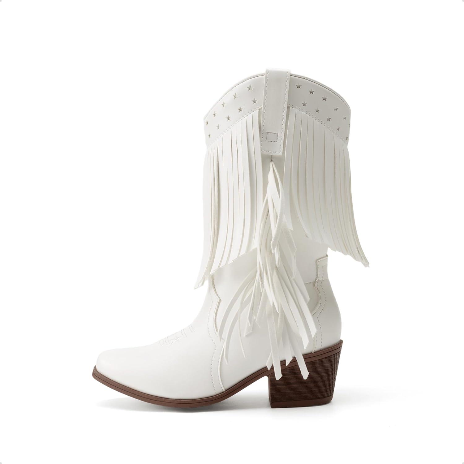 DREAM PAIRS Girls Cowboy Boots with Tassel Fringe Cowgirl Boots Kids Western Boots Stylish & Comfortable(White)