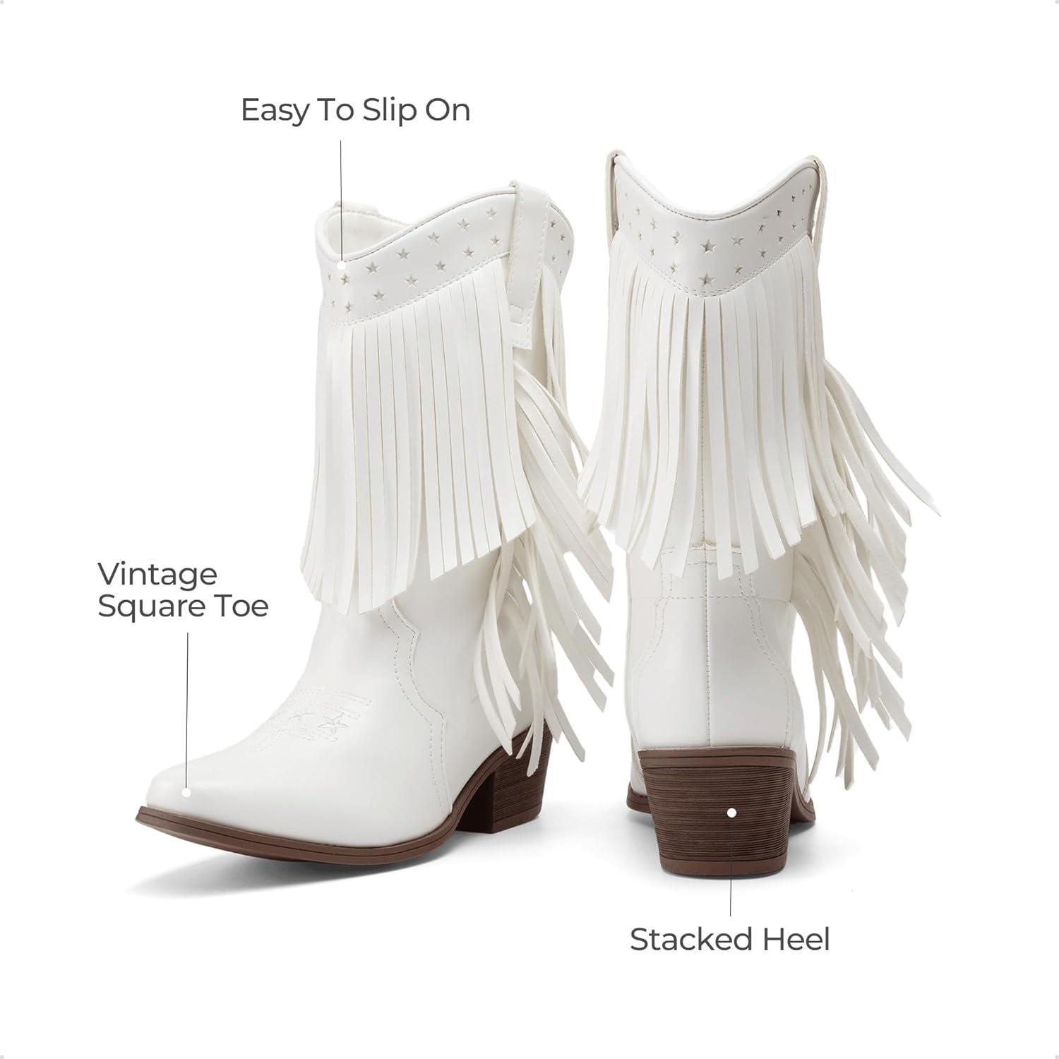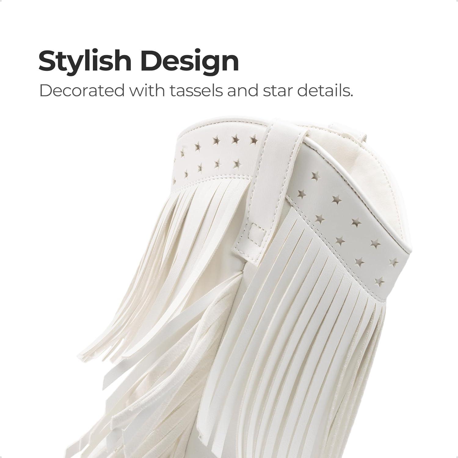 imageDREAM PAIRS Girls Cowboy Boots with Tassel Fringe Cowgirl Boots Kids Western Boots Stylish amp ComfortableWhite