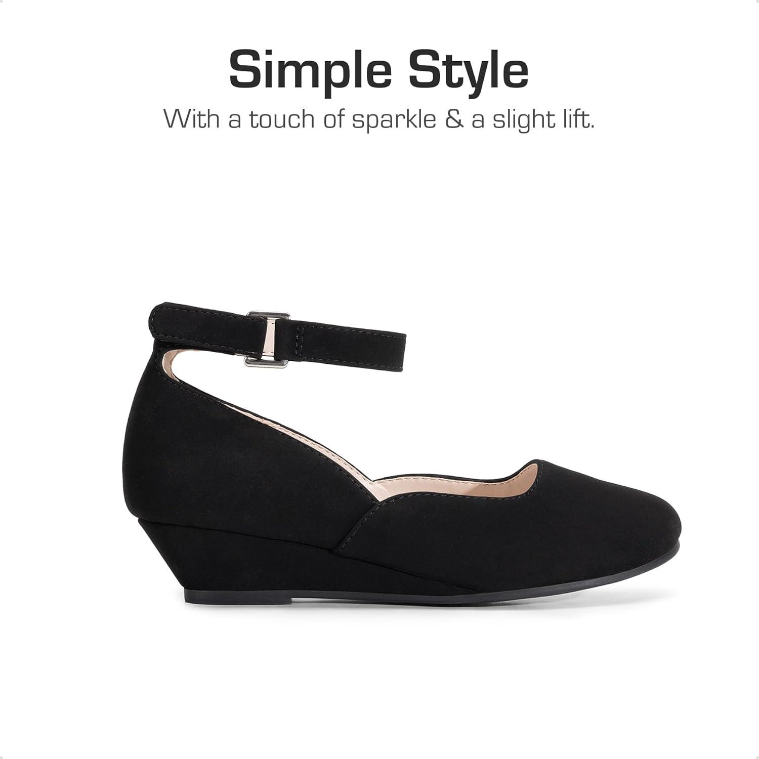 DREAM PAIRS Girls Dress Shoes Low Wedge Heels Ankle Strap Wedding Flower Party Pump for Toddler Little Big Kid(Black)