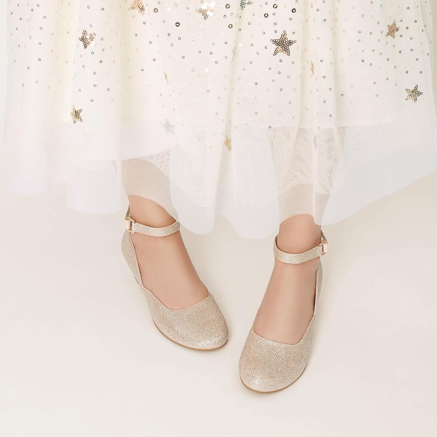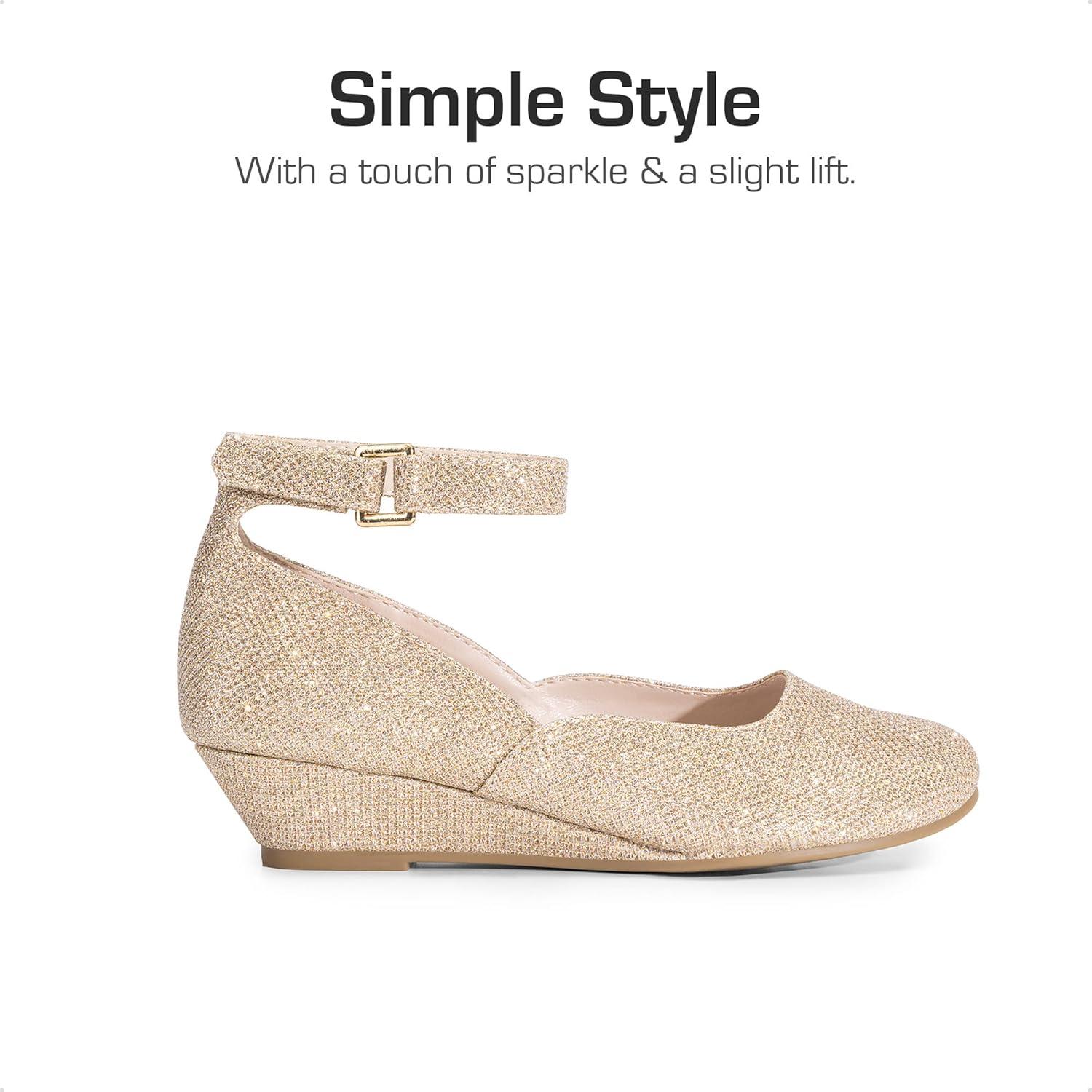 DREAM PAIRS Girls Dress Shoes Low Wedge Heels Ankle Strap Wedding Flower Party Pump for Toddler Little Big Kid(Gold)