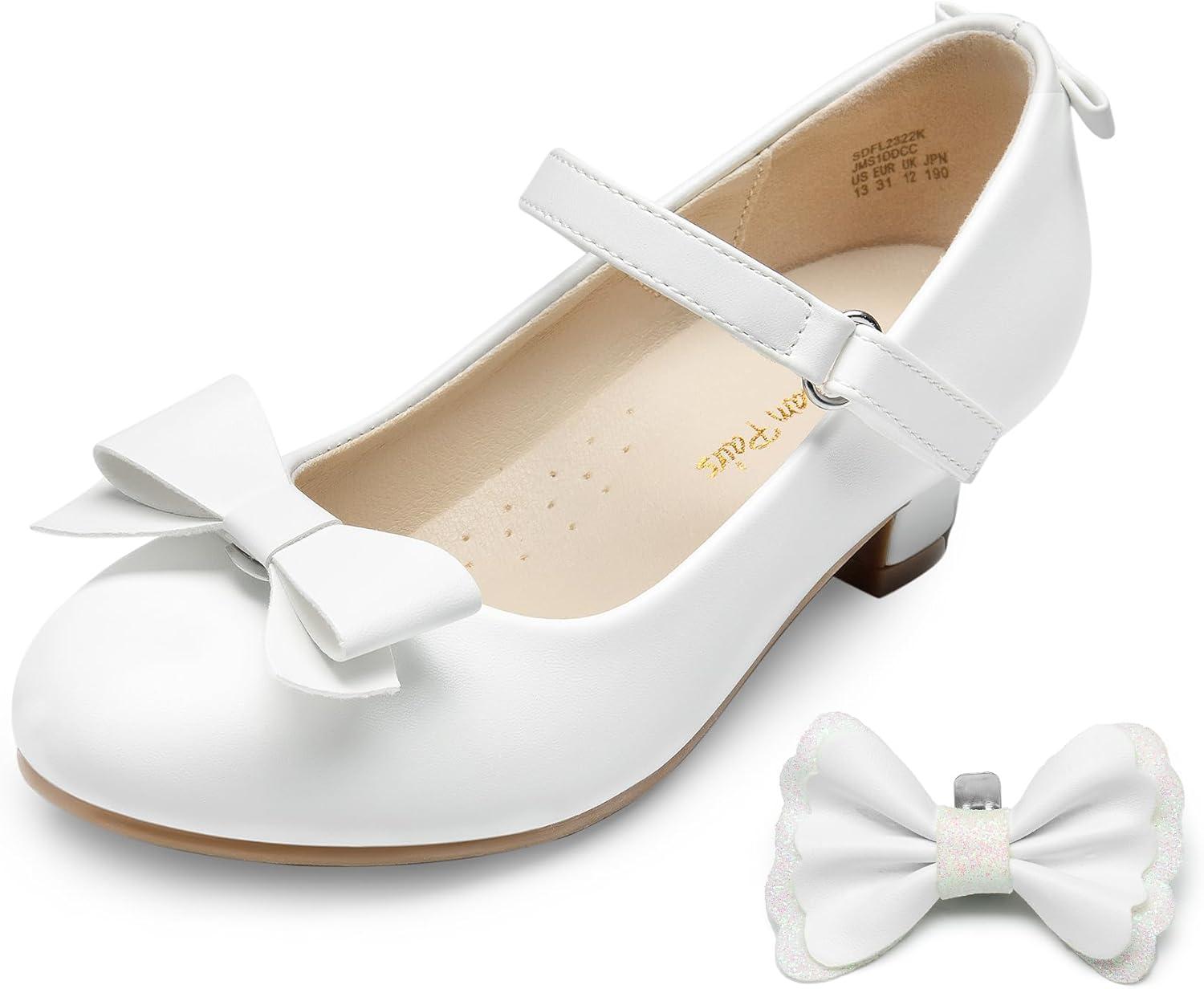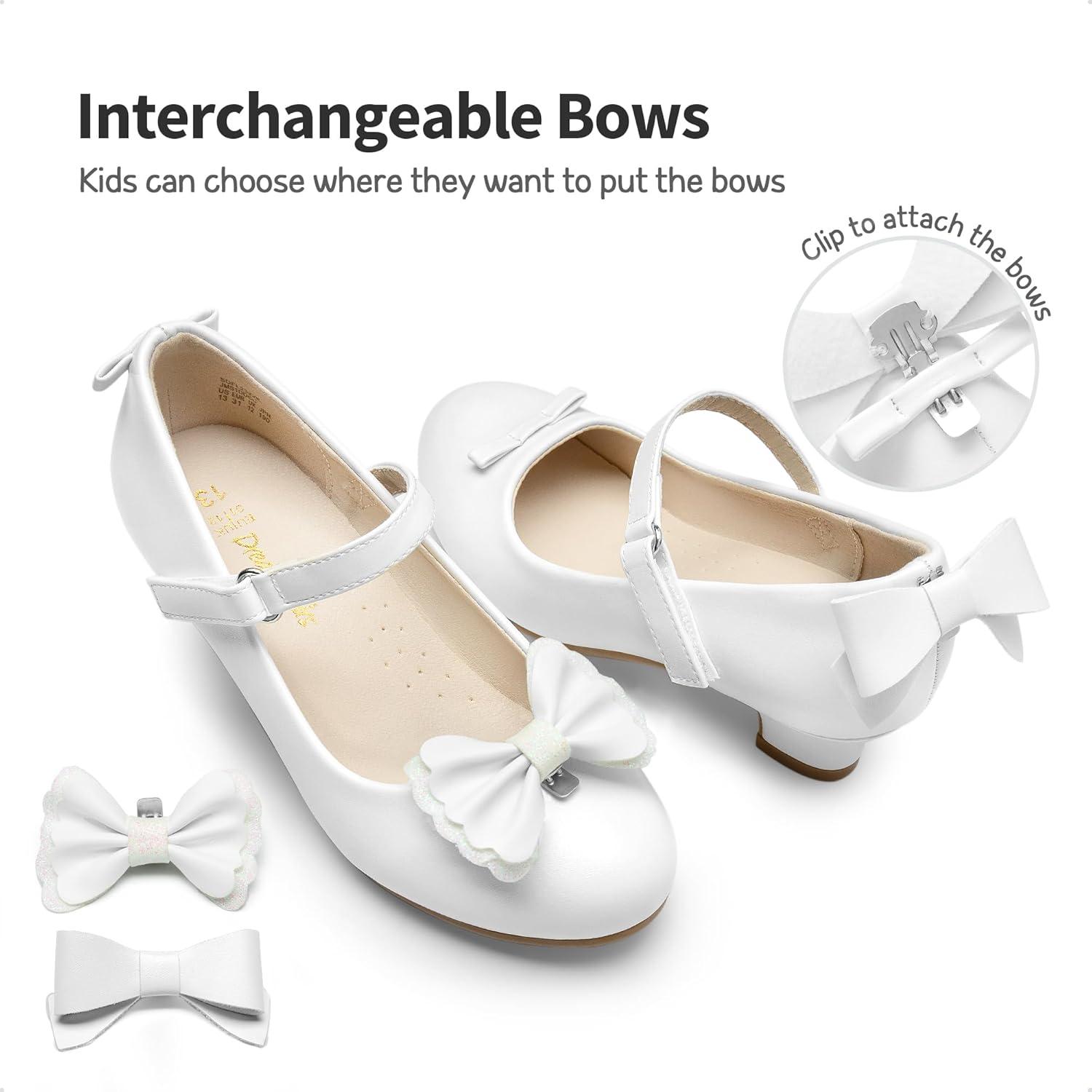 DREAM PAIRS Girls Dress Shoes Toddler Little Girls Heels Mary Jane Princess Shoes with Interchangeable Bow for Flower Girl Wedding Party(White)