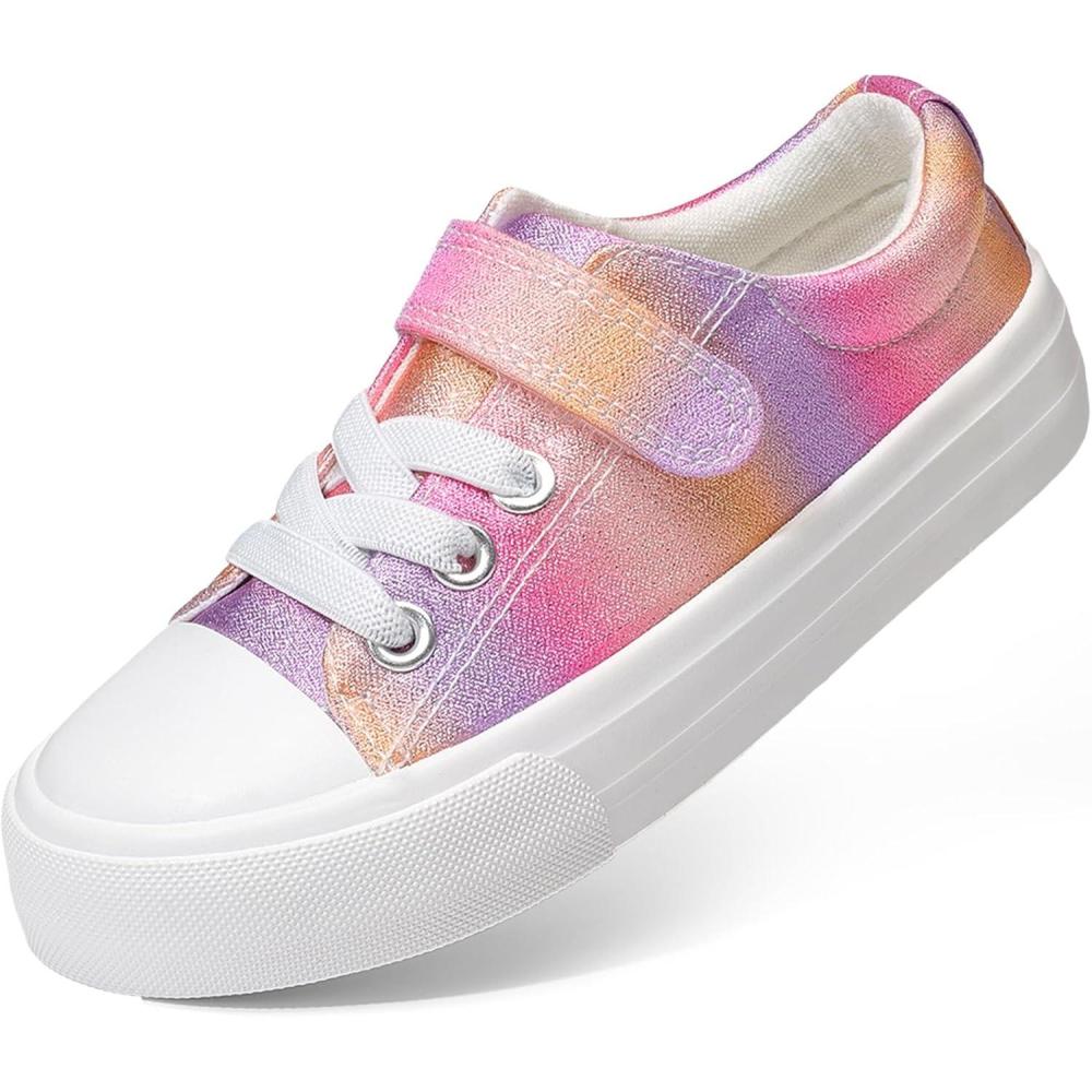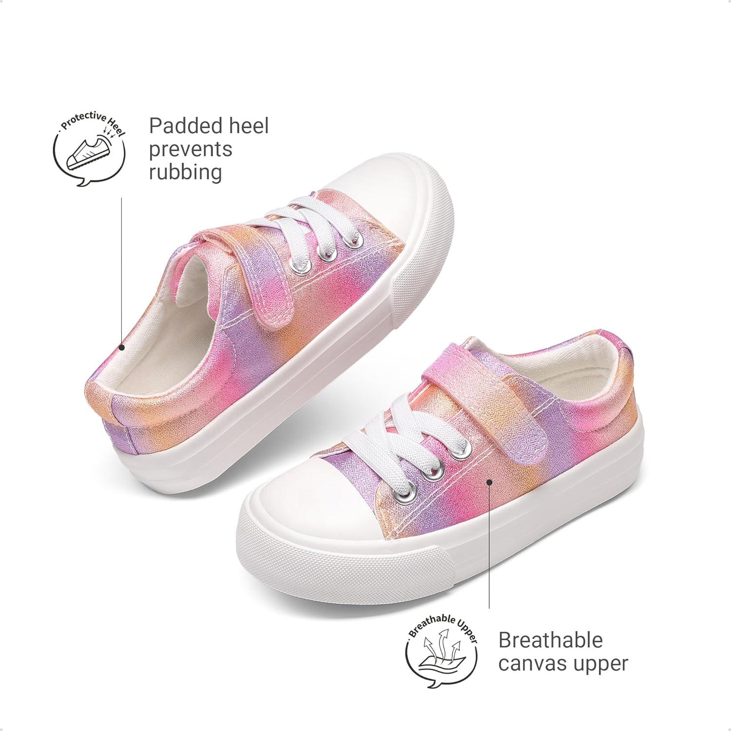DREAM PAIRS Kids Toddler Sneakers Boys Girls Casual Canvas School Shoes(Pink/Rainbow)