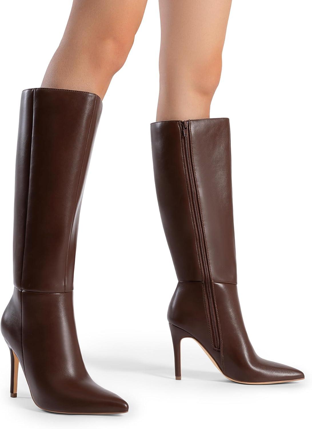 DREAM PAIRS Knee High Boots for Women, Sexy Pointed Toe Stiletto High Heel Boots, Fashion & Classic Dress Shoes(Brown)