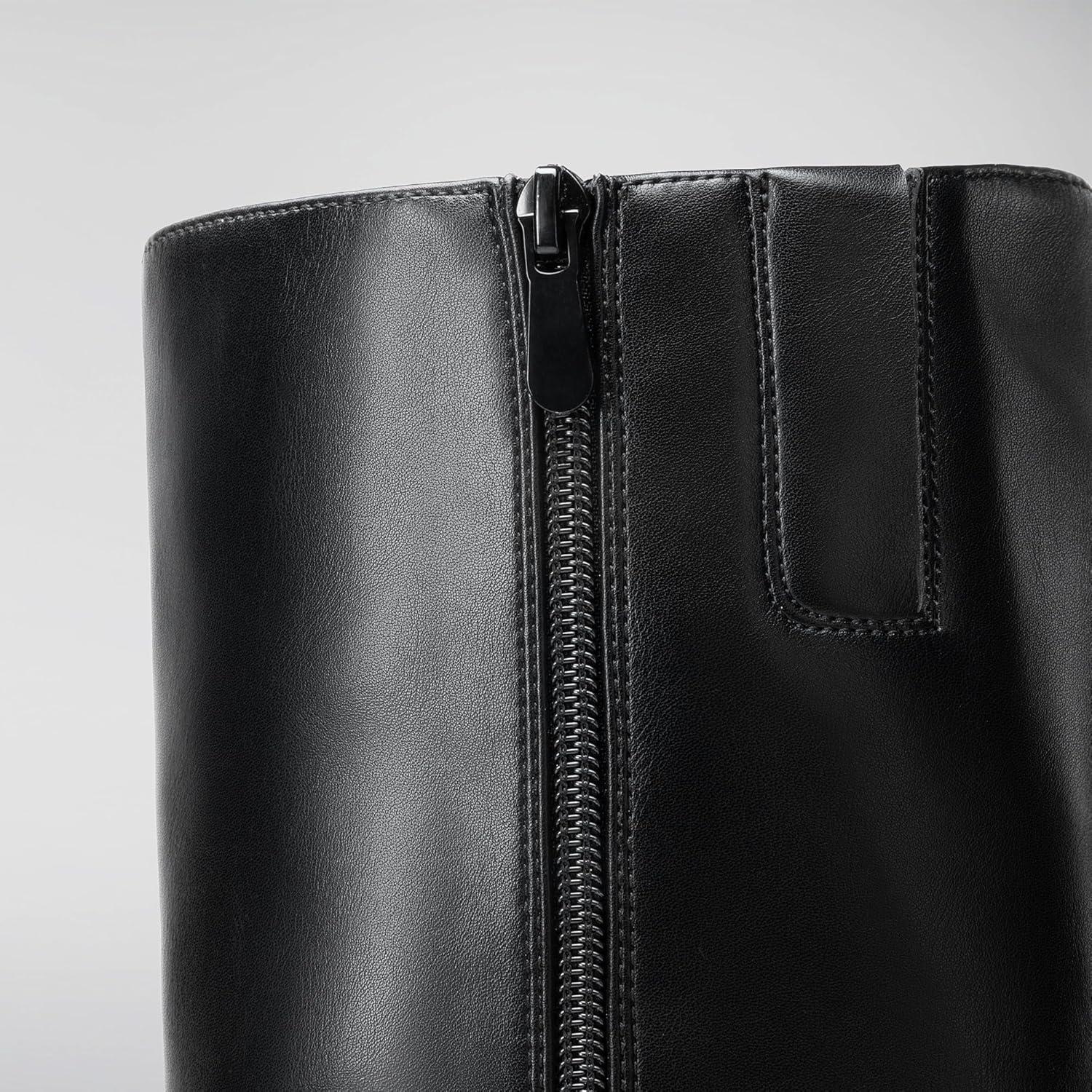 DREAM PAIRS Knee High Boots Women Chunky Block Heel Square Toe Side Zipper Tall Boots for Women(Black-pu)