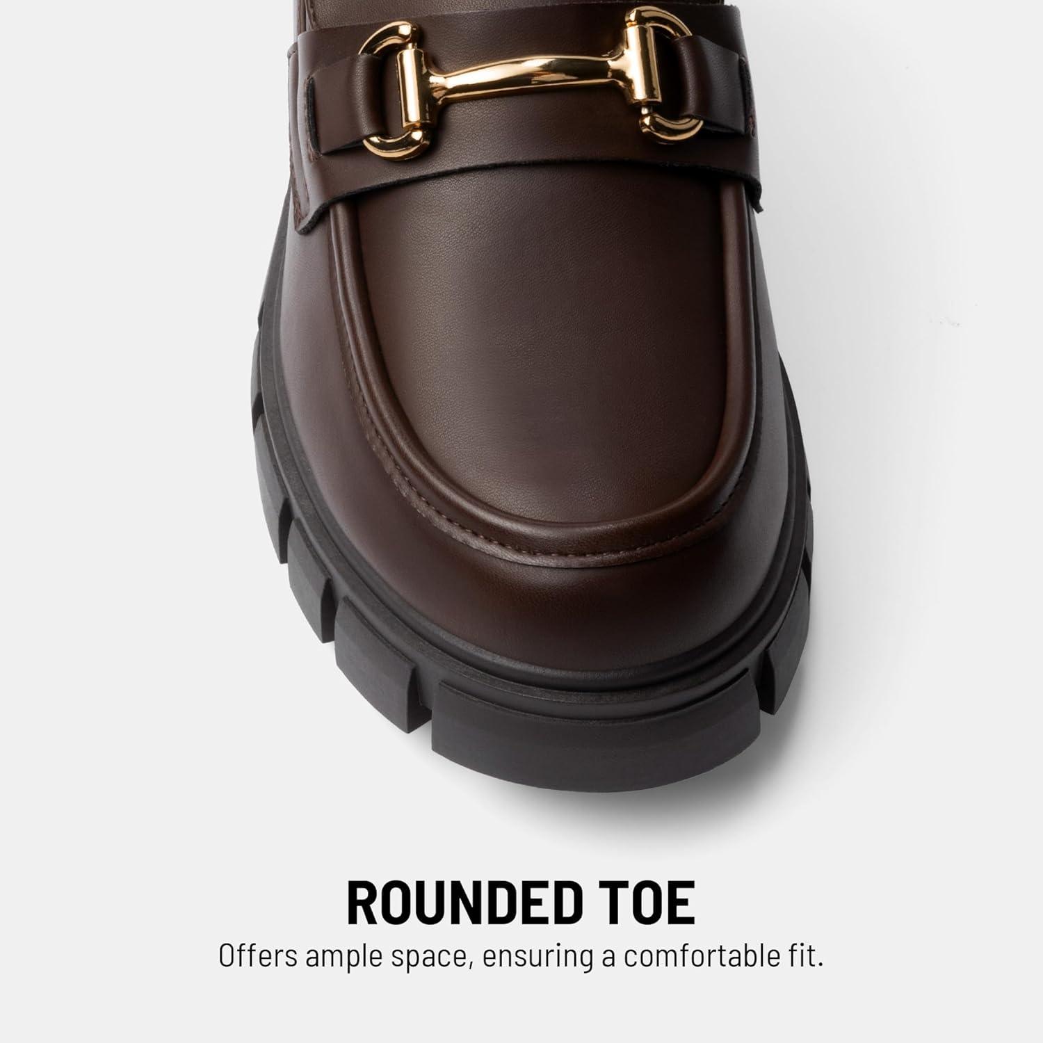 DREAM PAIRS Loafers for Women Platform Chunky Loafers Slip On Casual Shoes(Brown)