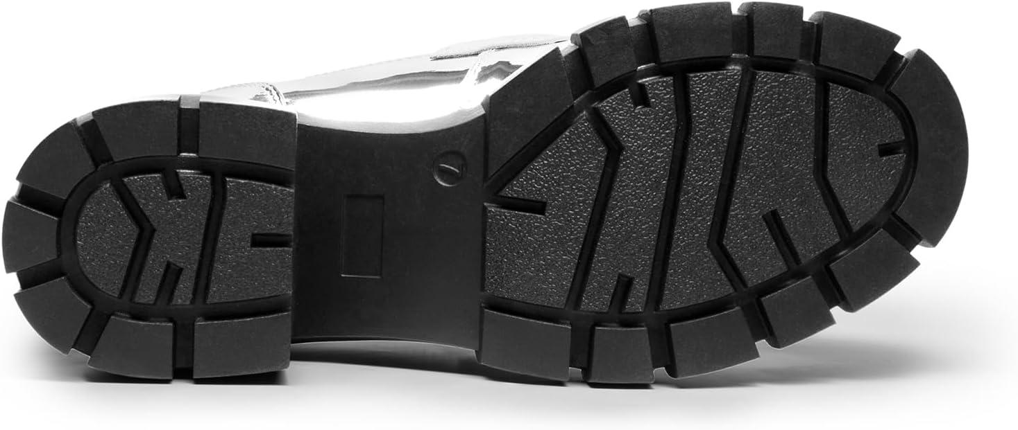 DREAM PAIRS Loafers for Women Platform Chunky Loafers Slip On Casual Shoes(Silver-pat)
