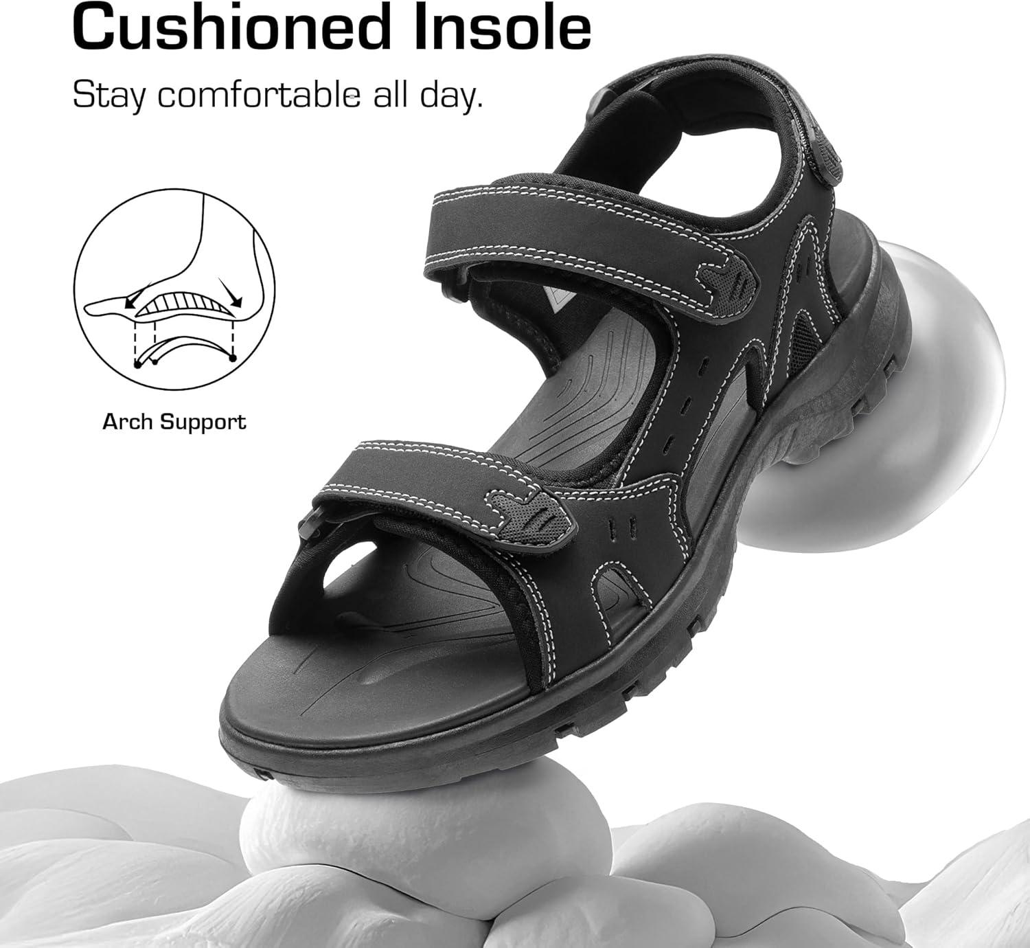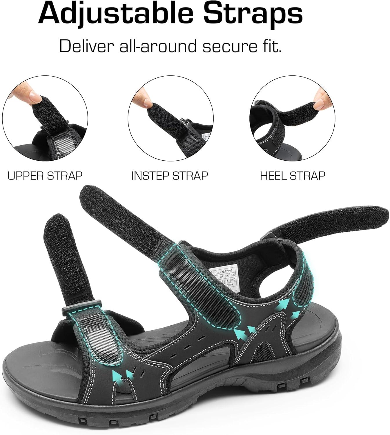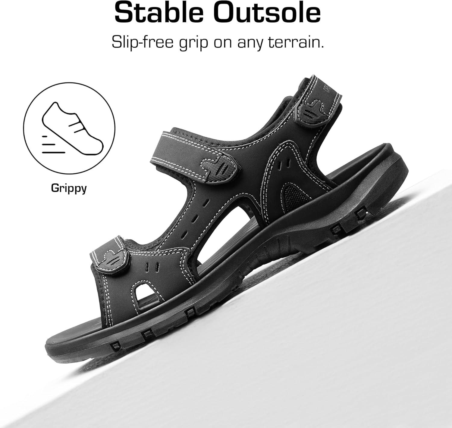These men’s athletic sandals feature adjustable hook-and-loop straps for a perfect fit, lightweight EVA insoles for all-day comfort, and anti-slip rubber outsoles for steady traction on any terrain. With quick-drainage functionality to keep your feet dry.