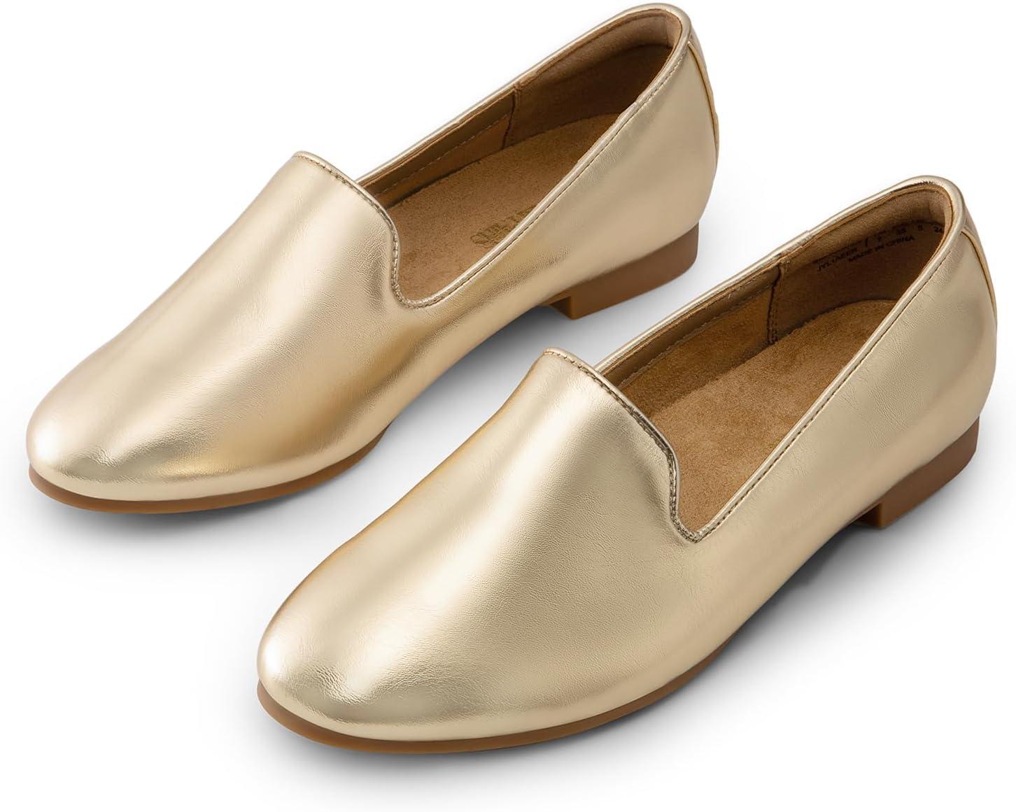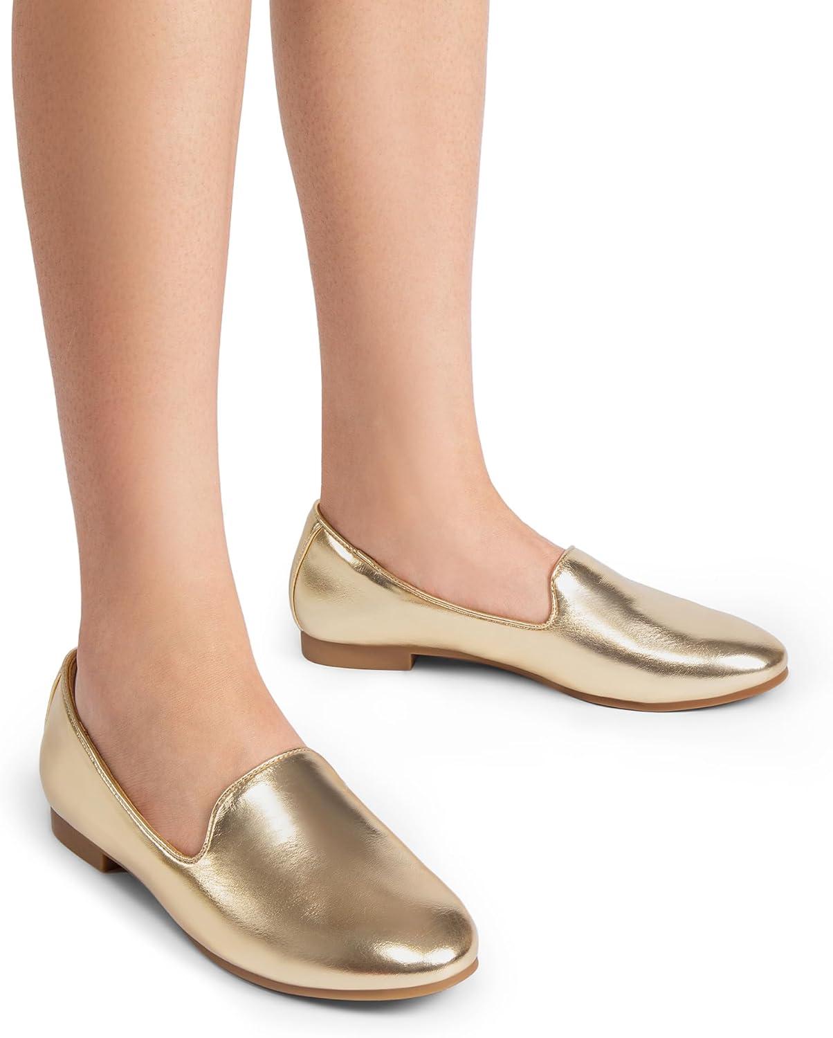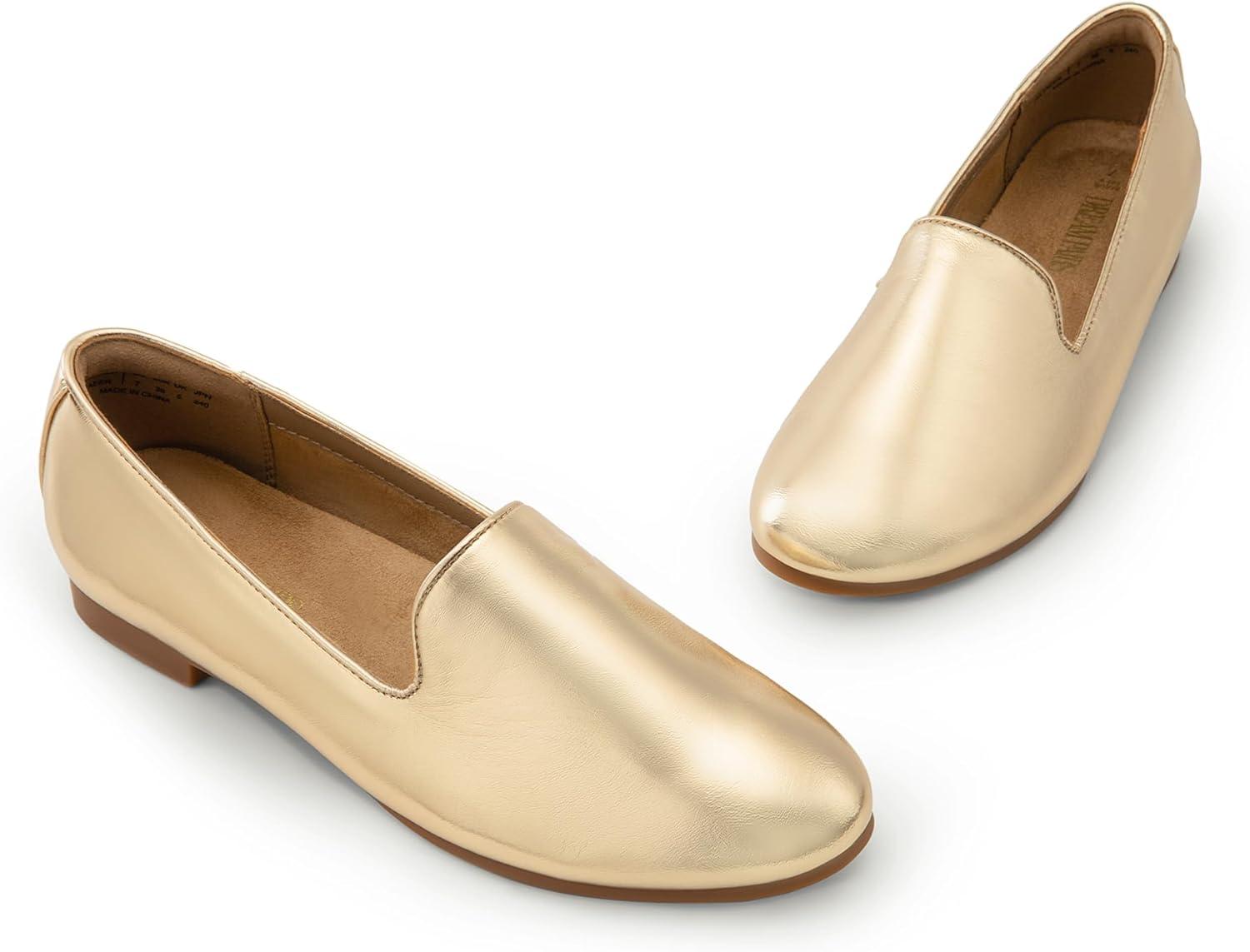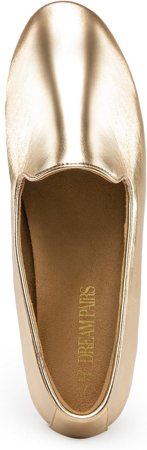 DREAM PAIRS Round Toe Flats for Women Dressy Comfortable, Slip-On Dress Business Casual Office Work Shoes for Women(Gold)