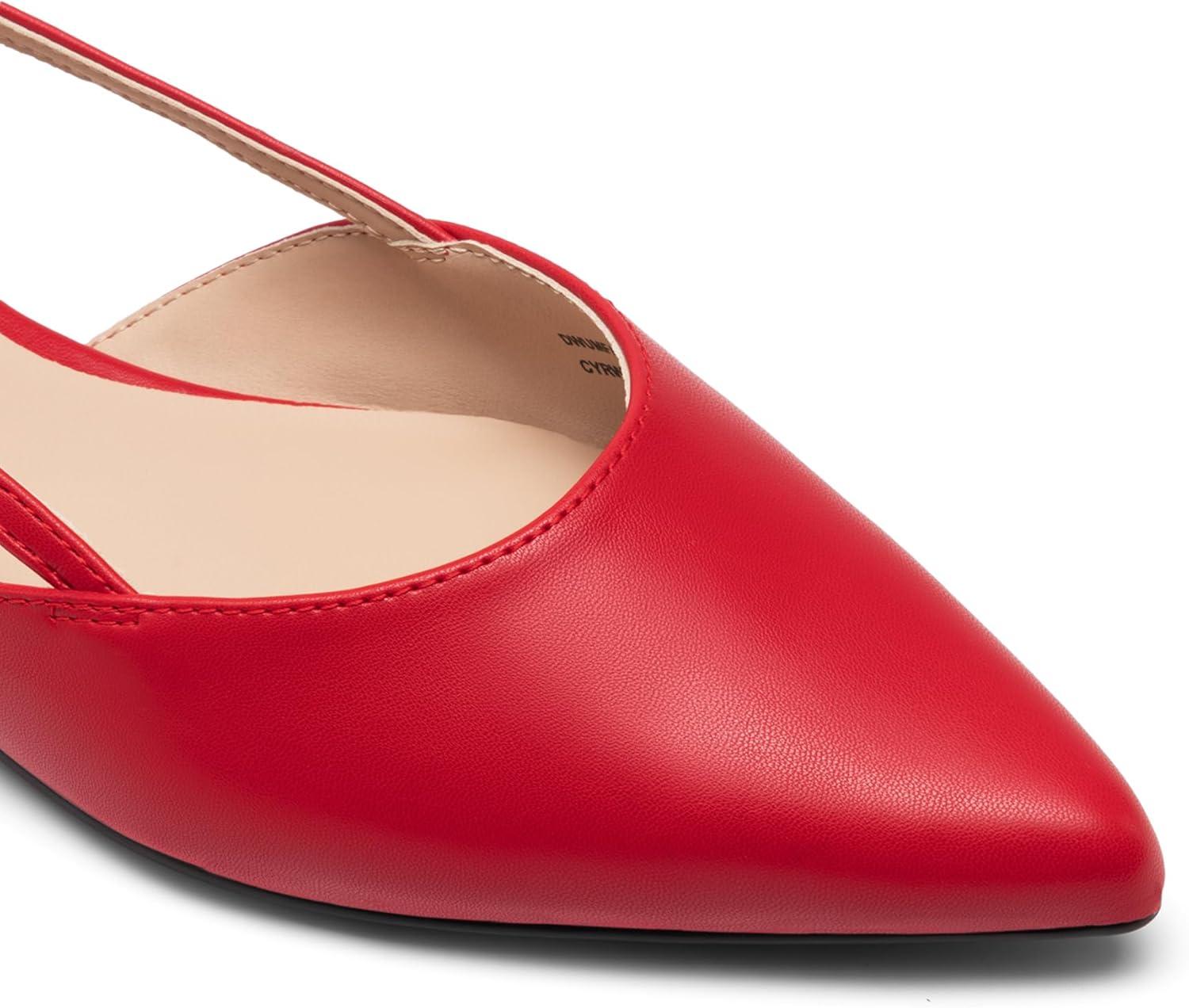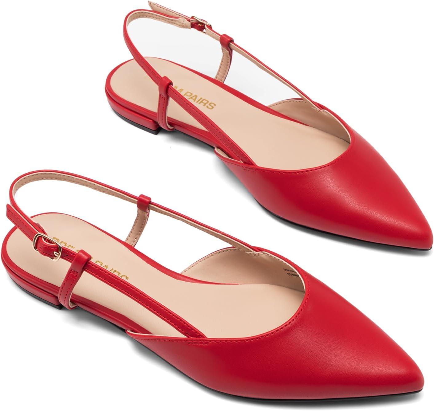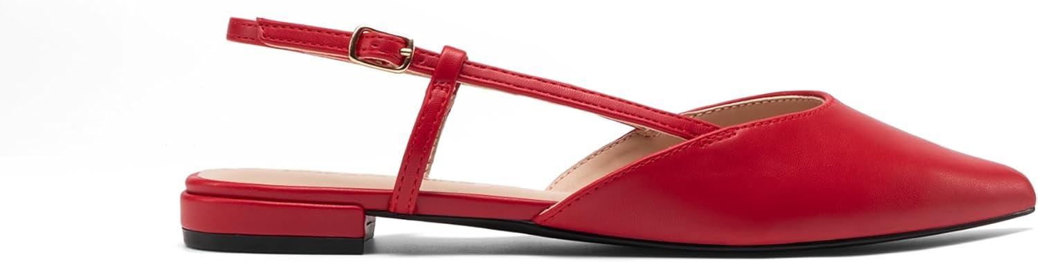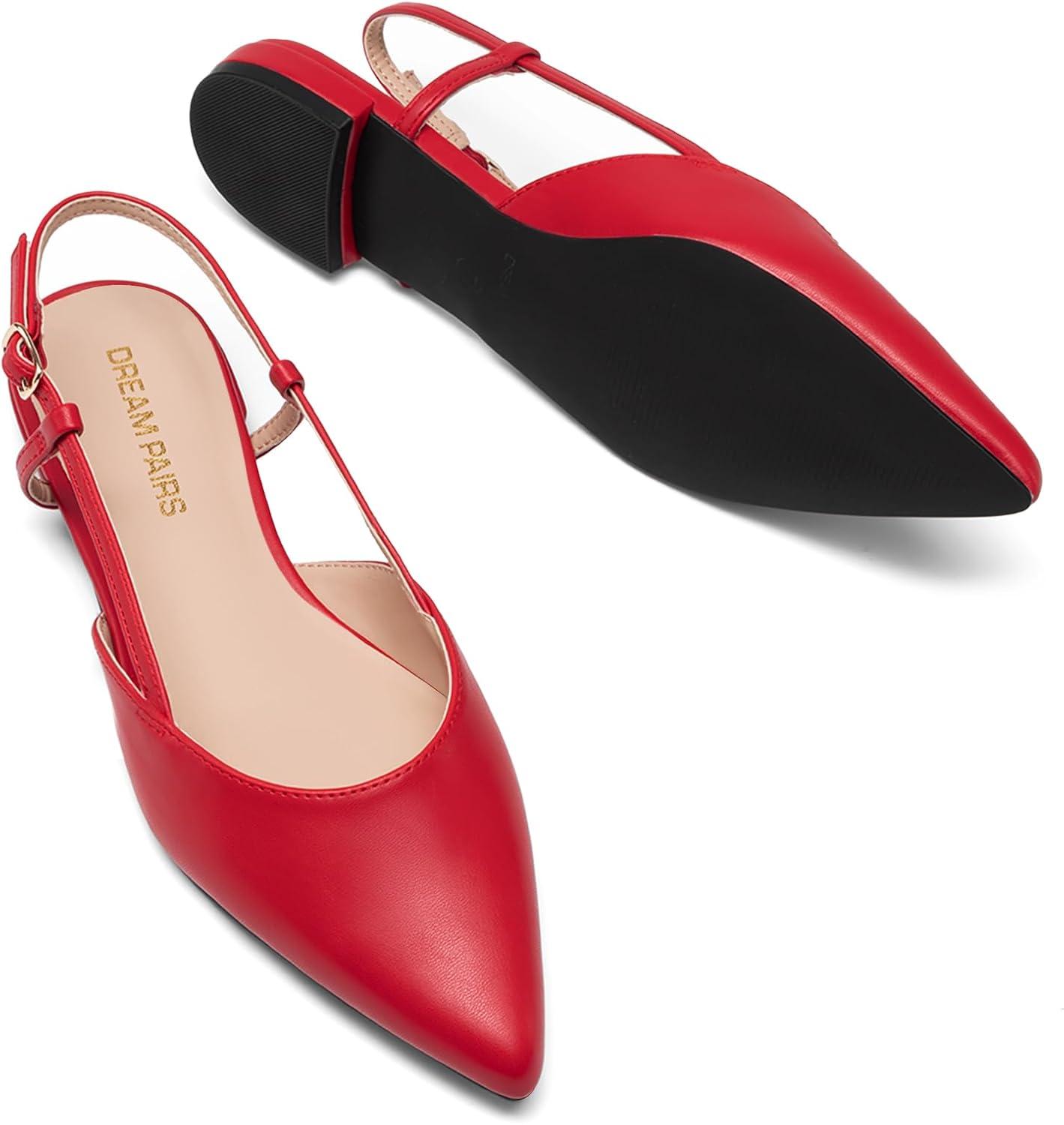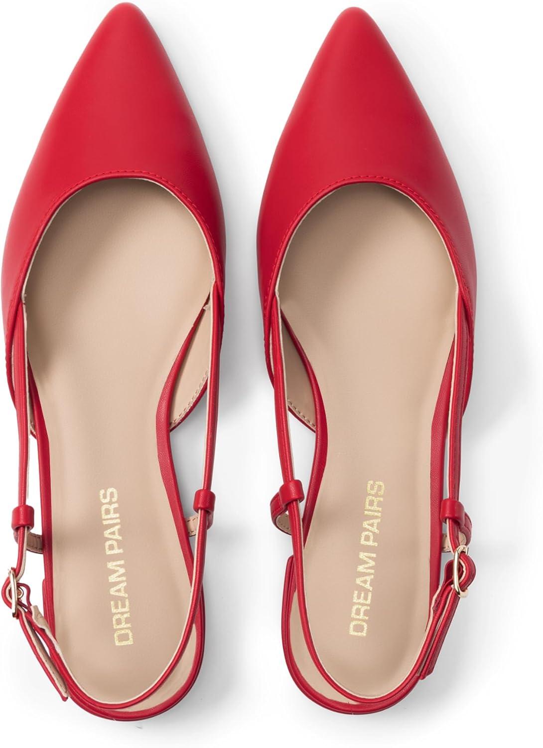 DREAM PAIRS Slingback Flats for Women, Pointed-Toe Elegant Women’s Ballet Flats with Buckle Strap, Classic Low Heel Dress Shoes for Casual Work Office Party(Red)