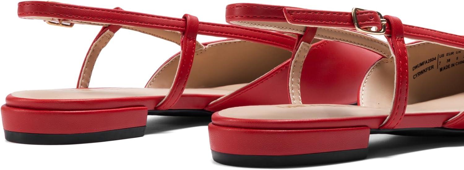 DREAM PAIRS Slingback Flats for Women, Pointed-Toe Elegant Women's Ballet Flats with Buckle Strap, Classic Low Heel Dress Shoes for Casual Work Office Party(Red)