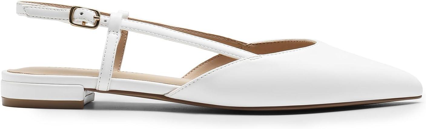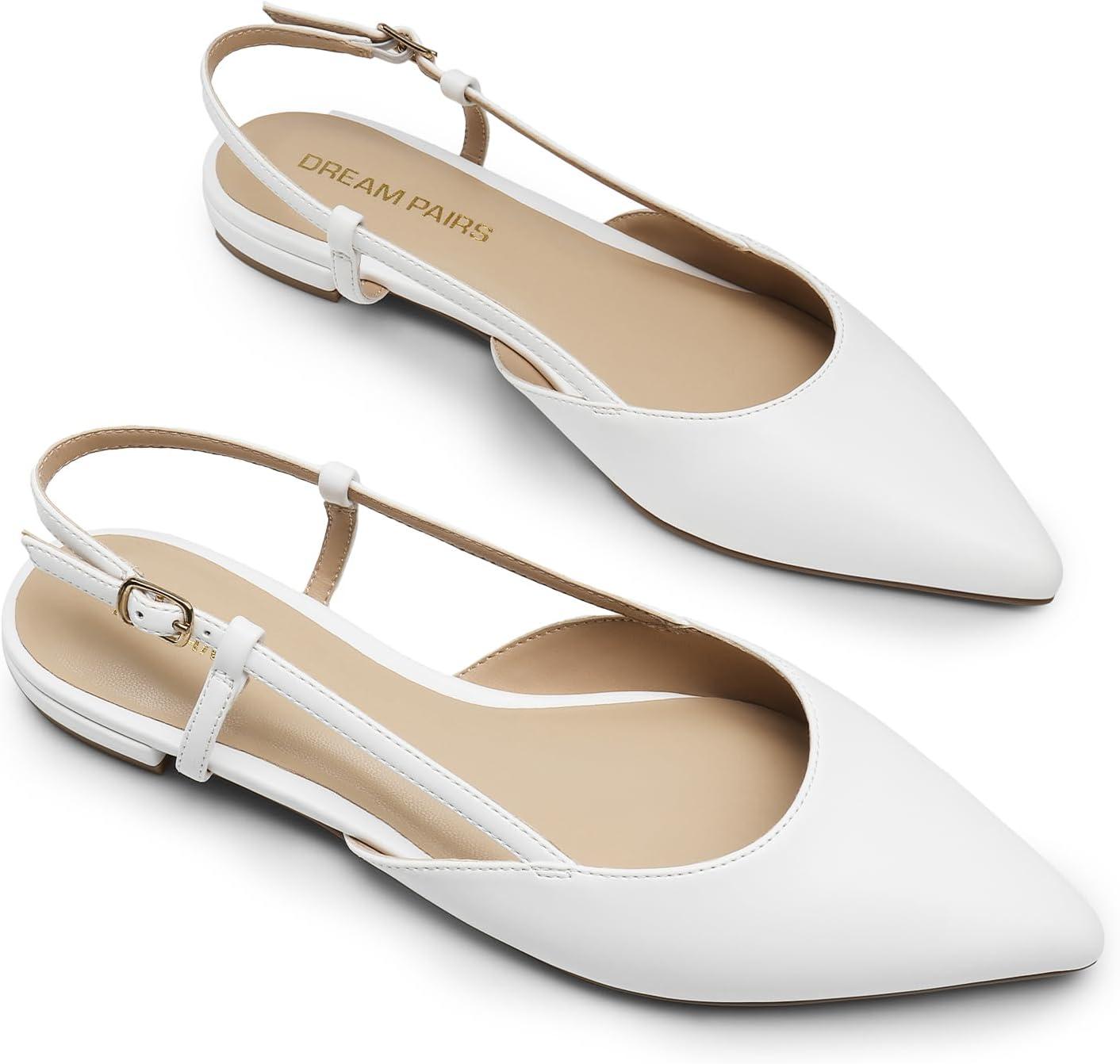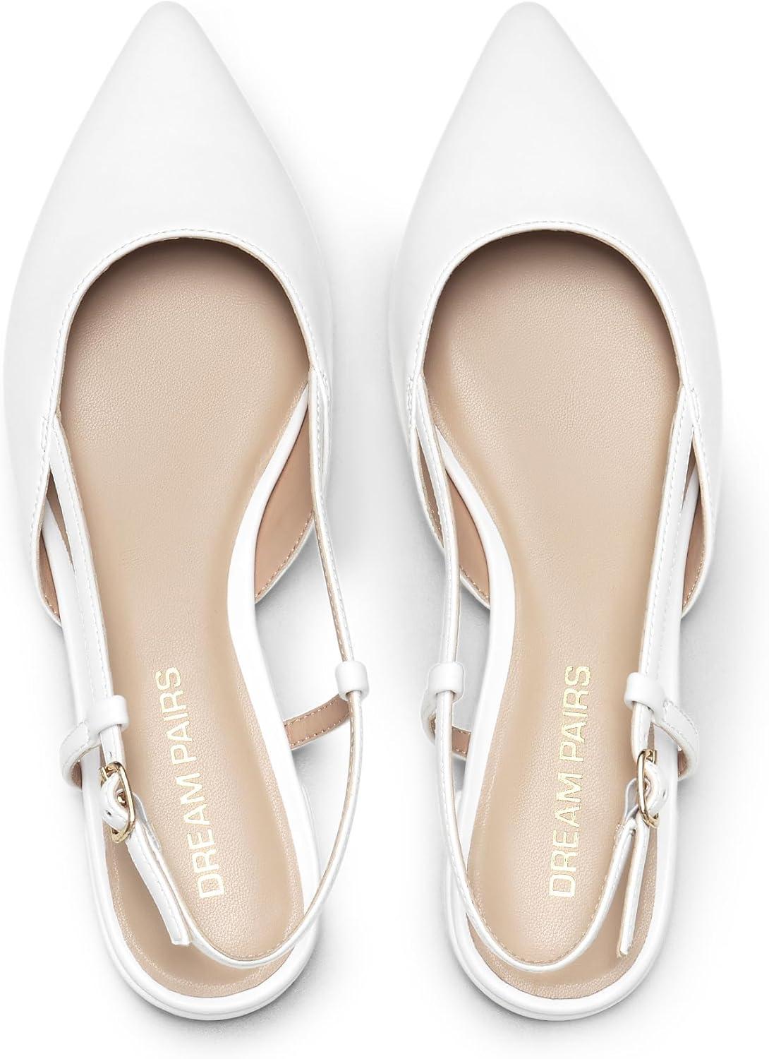 DREAM PAIRS Slingback Flats for Women, Pointed-Toe Elegant Women's Ballet Flats with Buckle Strap, Classic Low Heel Dress Shoes for Casual Work Office Party(White-pu)