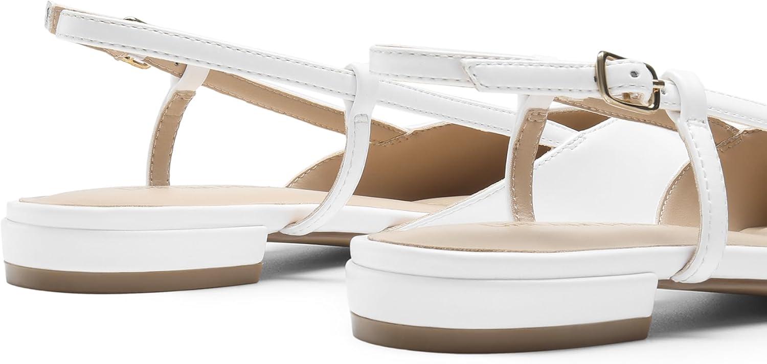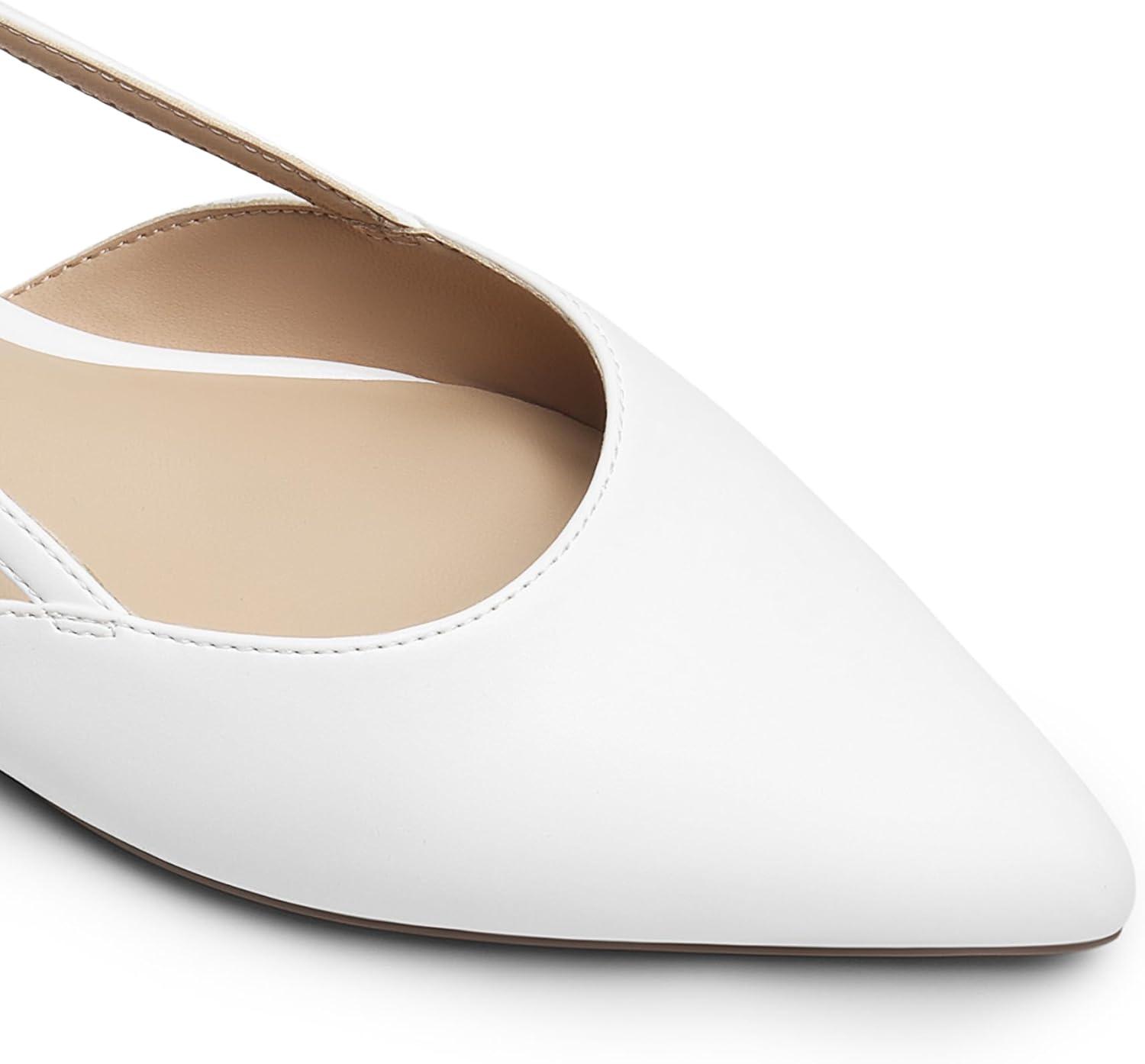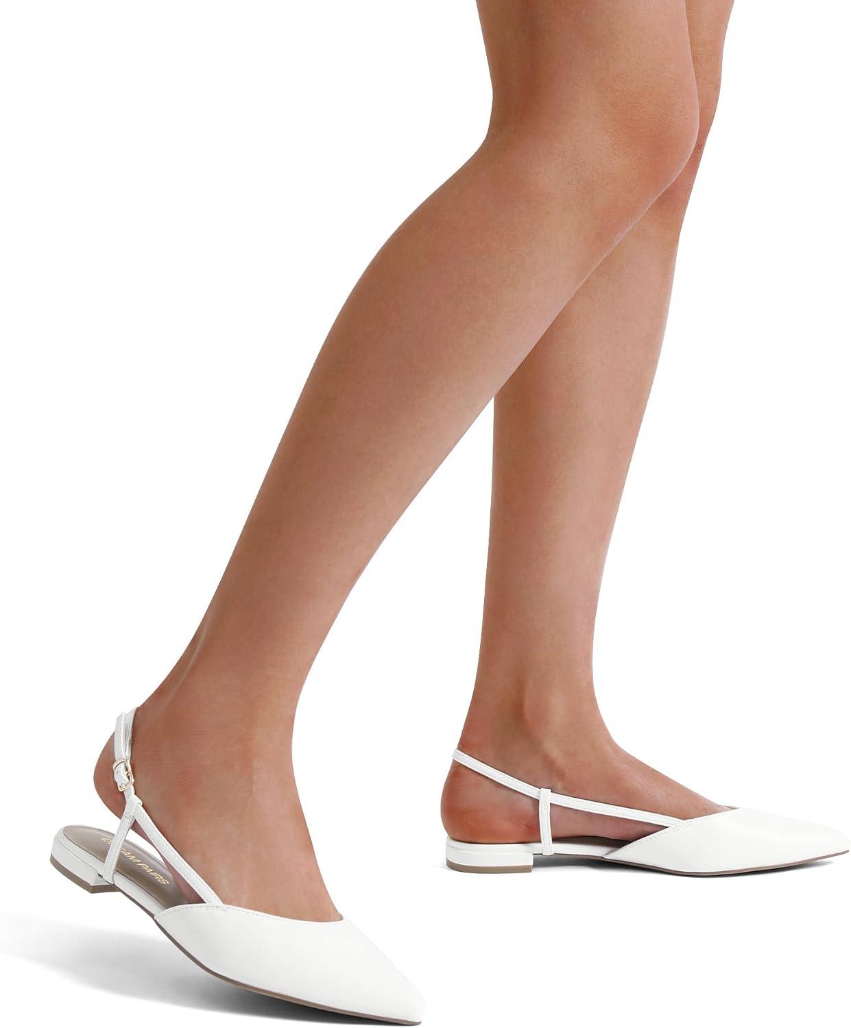 DREAM PAIRS Slingback Flats for Women, Pointed-Toe Elegant Women's Ballet Flats with Buckle Strap, Classic Low Heel Dress Shoes for Casual Work Office Party(White-pu)
