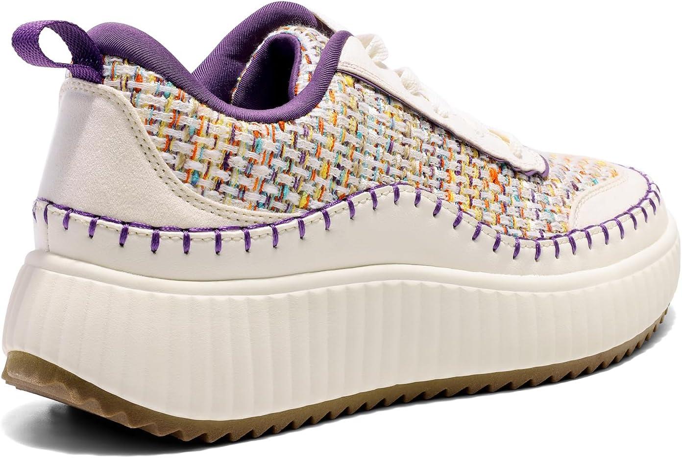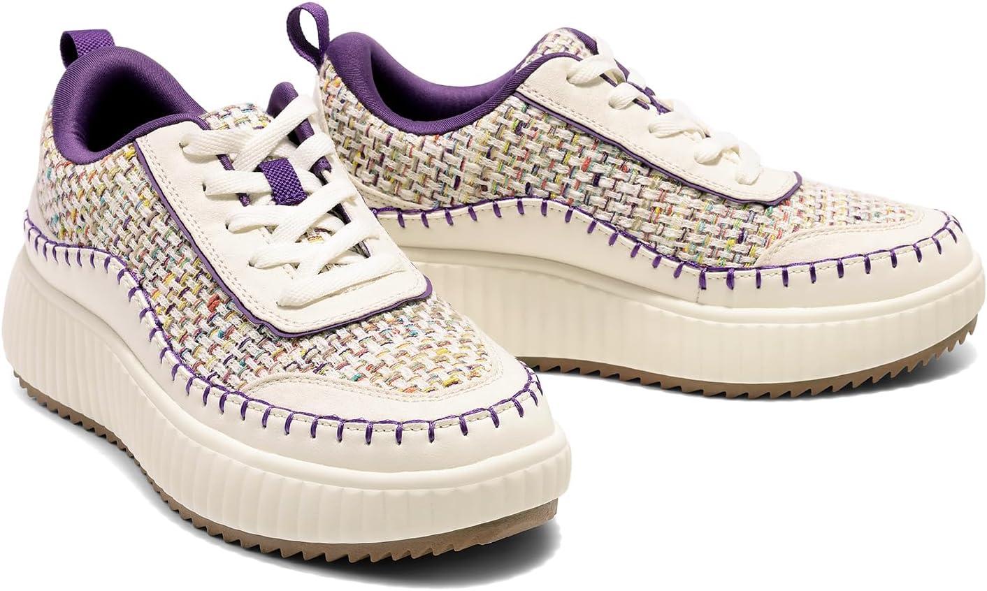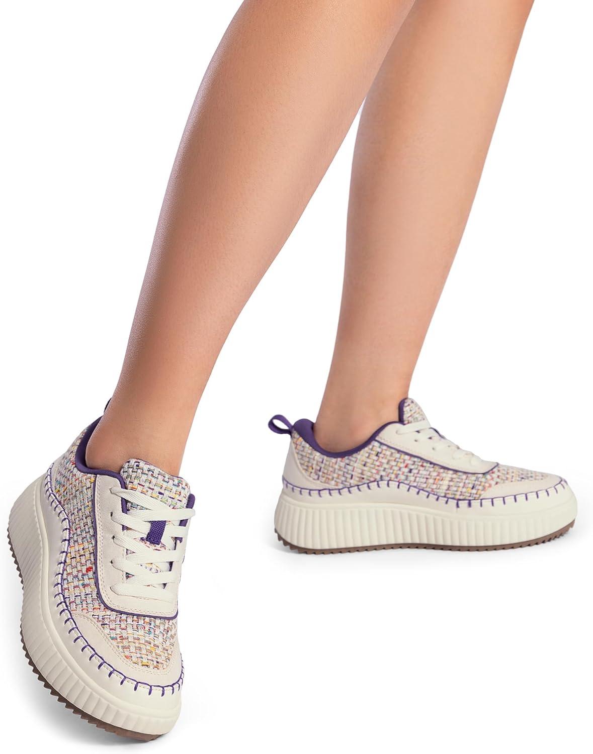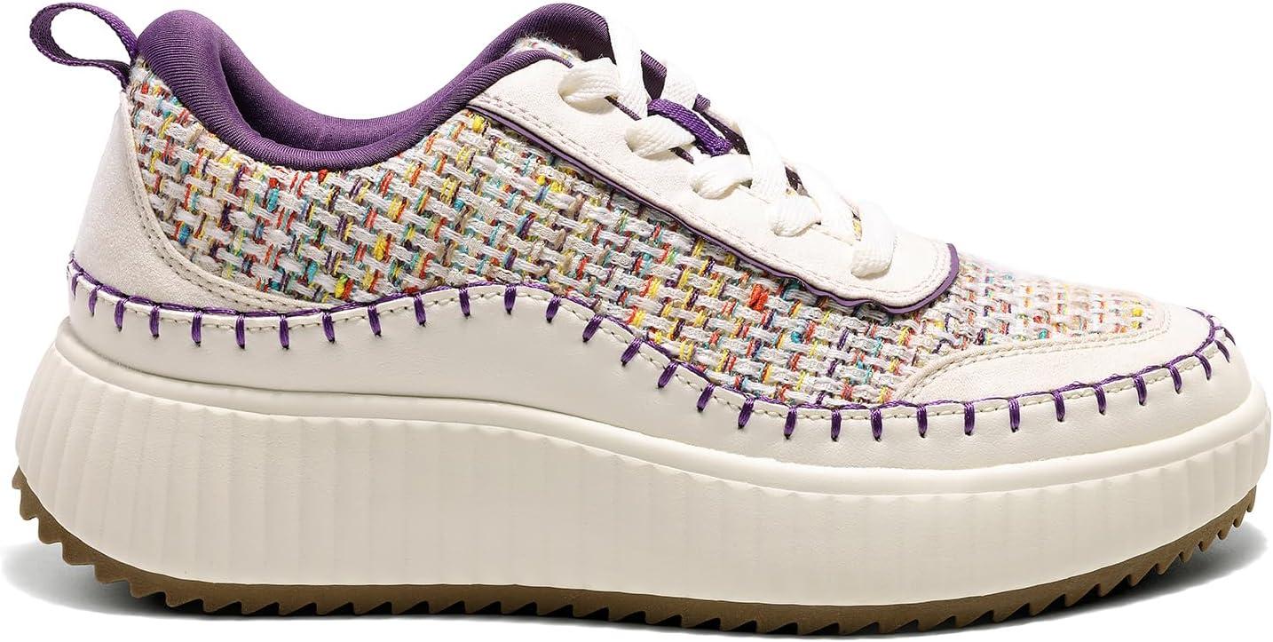 DREAM PAIRS Women Chunky City Tweed Comfortable Casual Platform Fashion Sneaker(White/Purple)