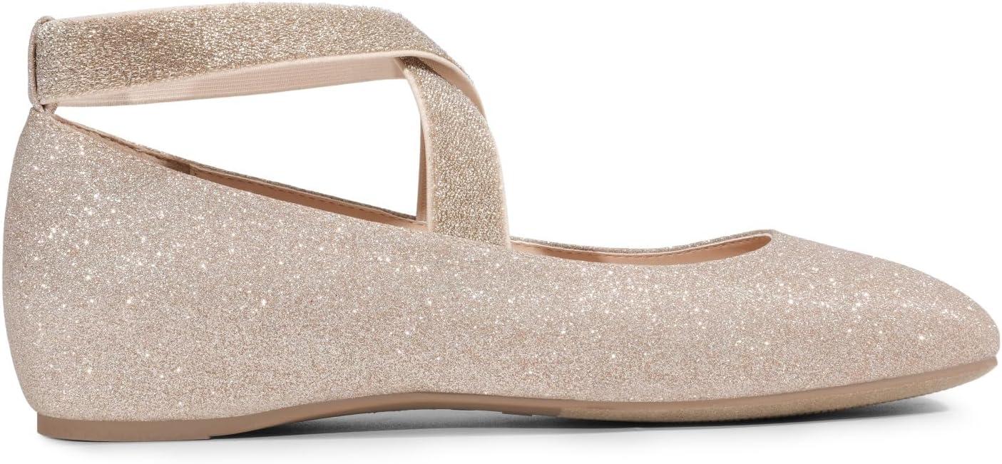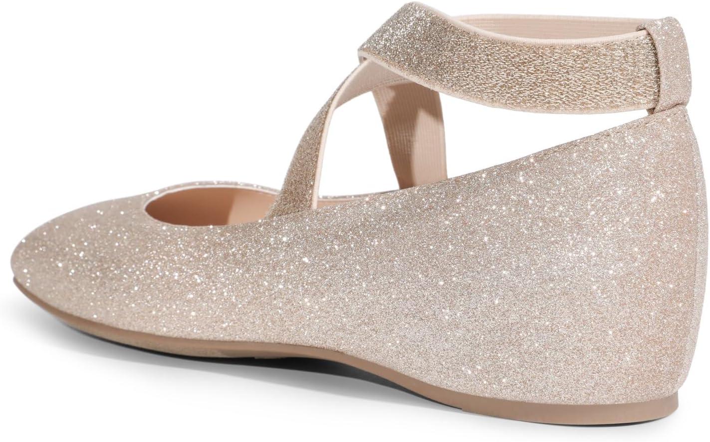 DREAM PAIRS Women's Ballet Flats, Comfortable Slip-On Square Toe Dress Shoes with Elastic Ankle Straps(Gold-glitter)