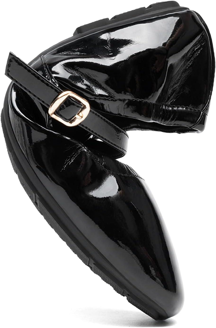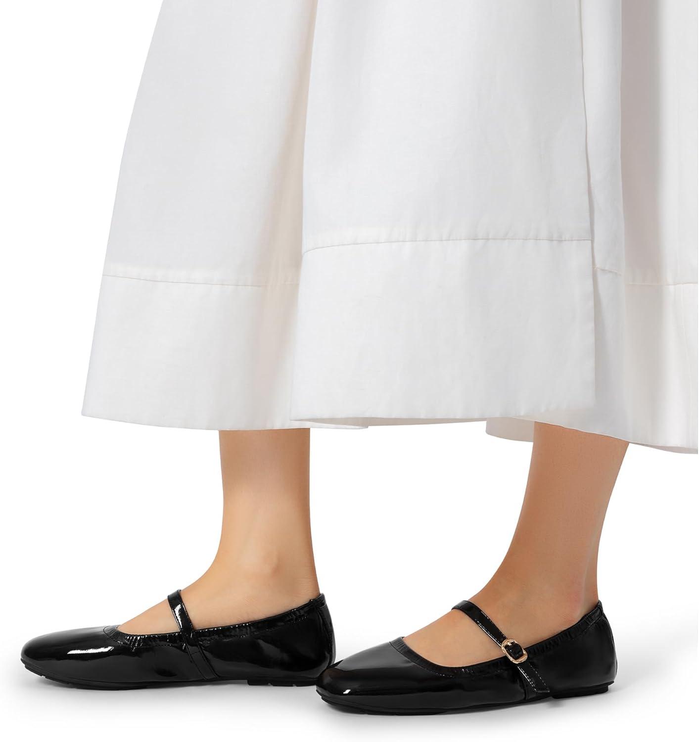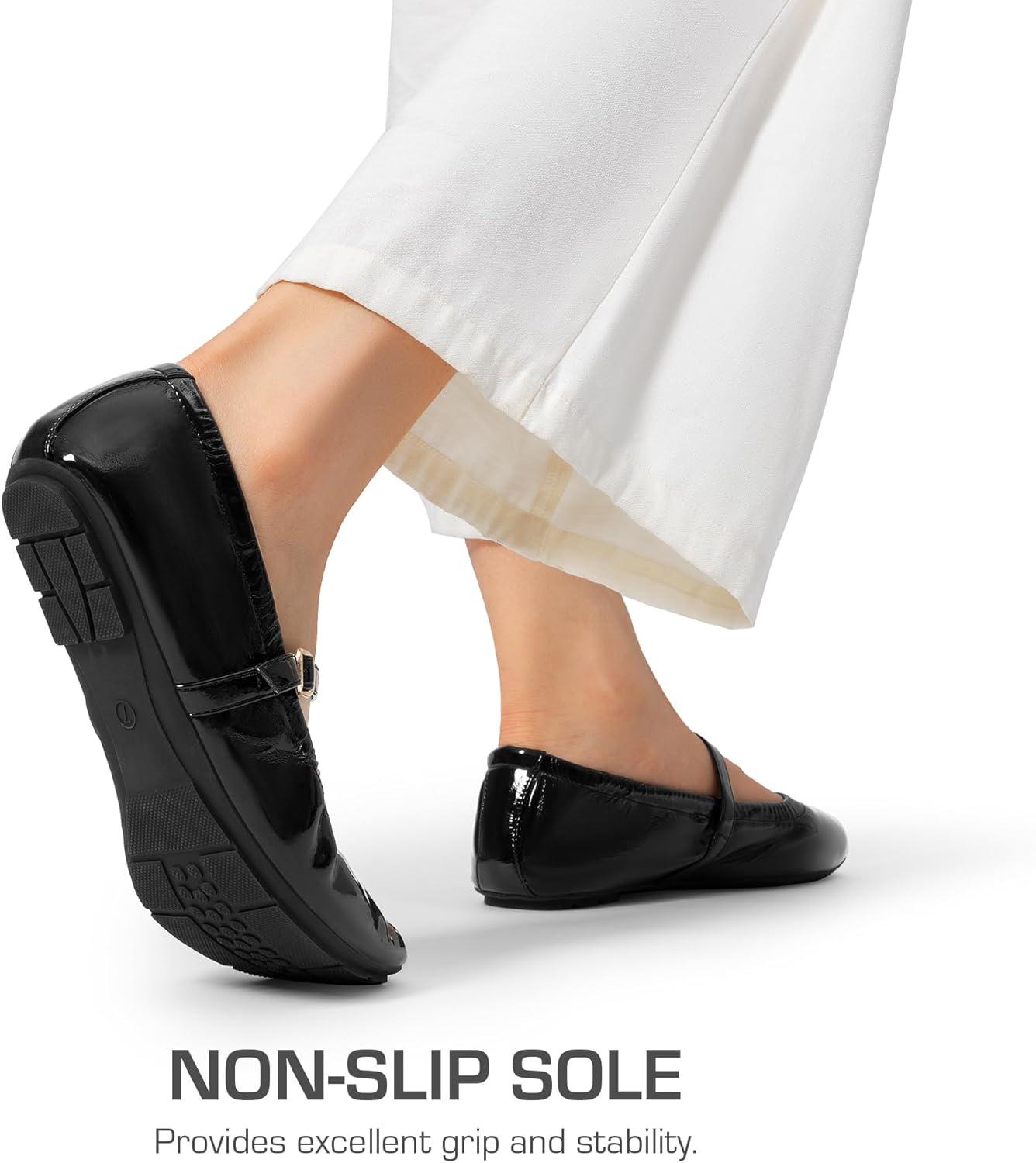 DREAM PAIRS Women's Ballet Flats Foldable Square Toe Mary Jane Flats Comfortable Slip On Dress Shoes Business Casual Work Mary Jane Shoes(Black-pat)