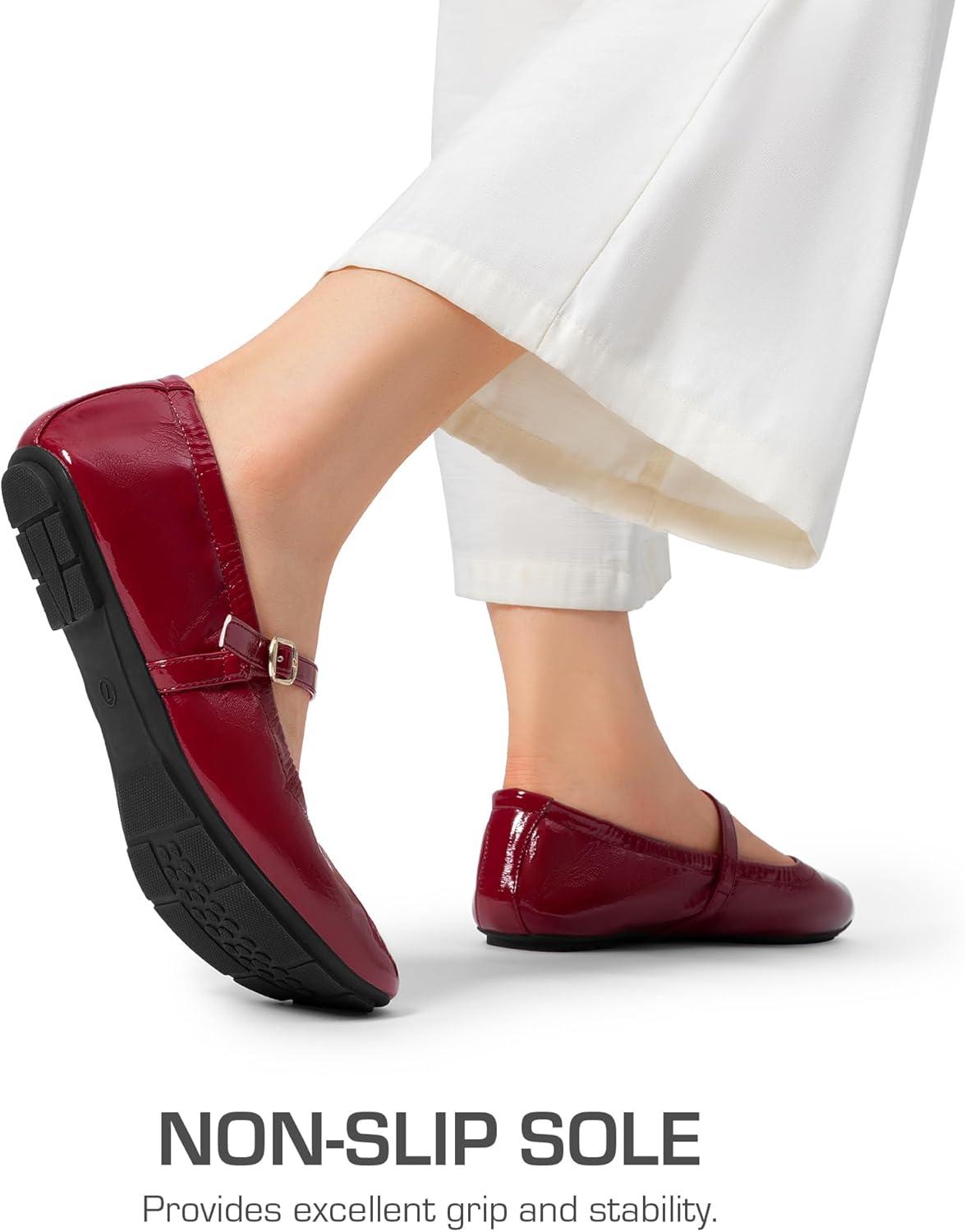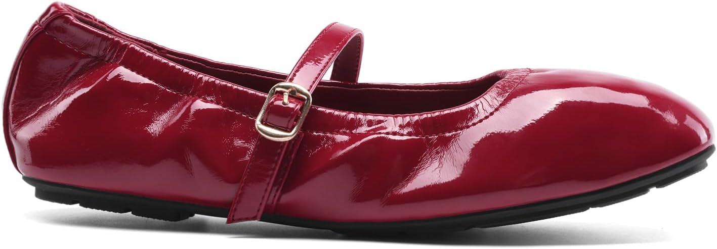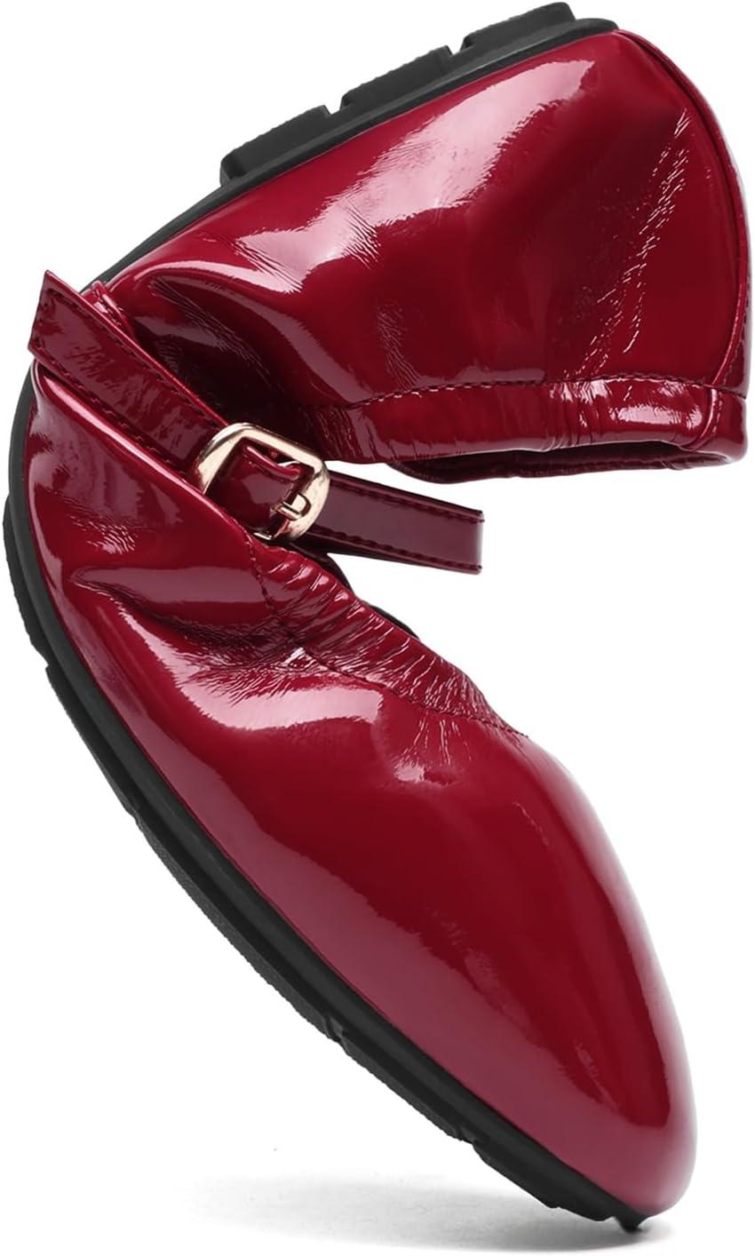 DREAM PAIRS Women's Ballet Flats Foldable Square Toe Mary Jane Flats Comfortable Slip On Dress Shoes Business Casual Work Mary Jane Shoes(Red)