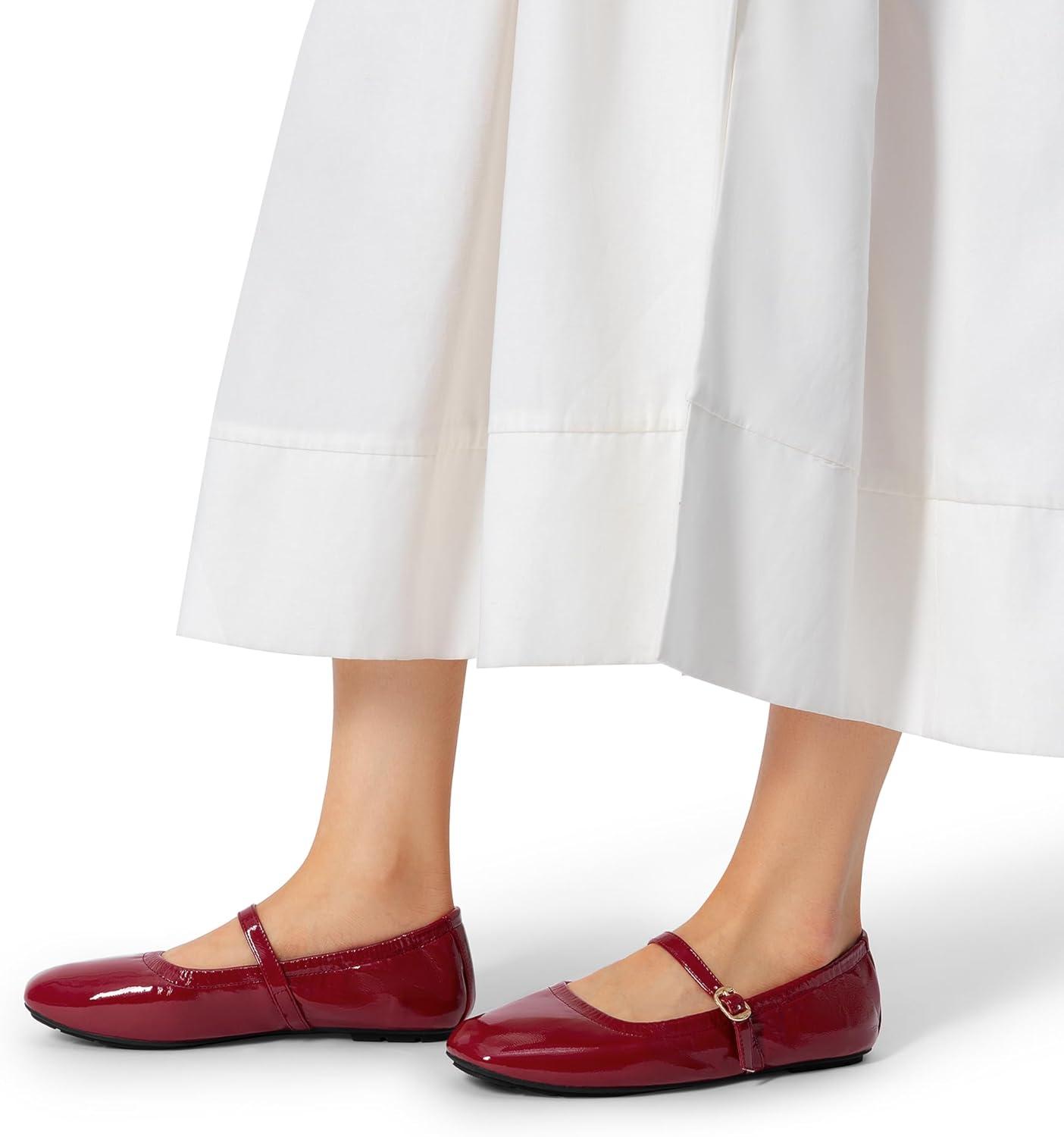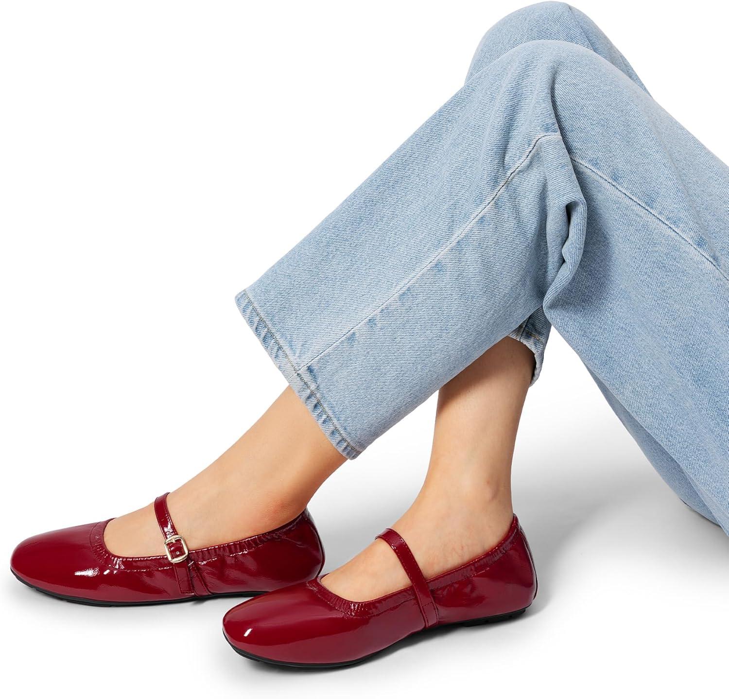 DREAM PAIRS Women’s Ballet Flats Foldable Square Toe Mary Jane Flats Comfortable Slip On Dress Shoes Business Casual Work Mary Jane Shoes(Red)