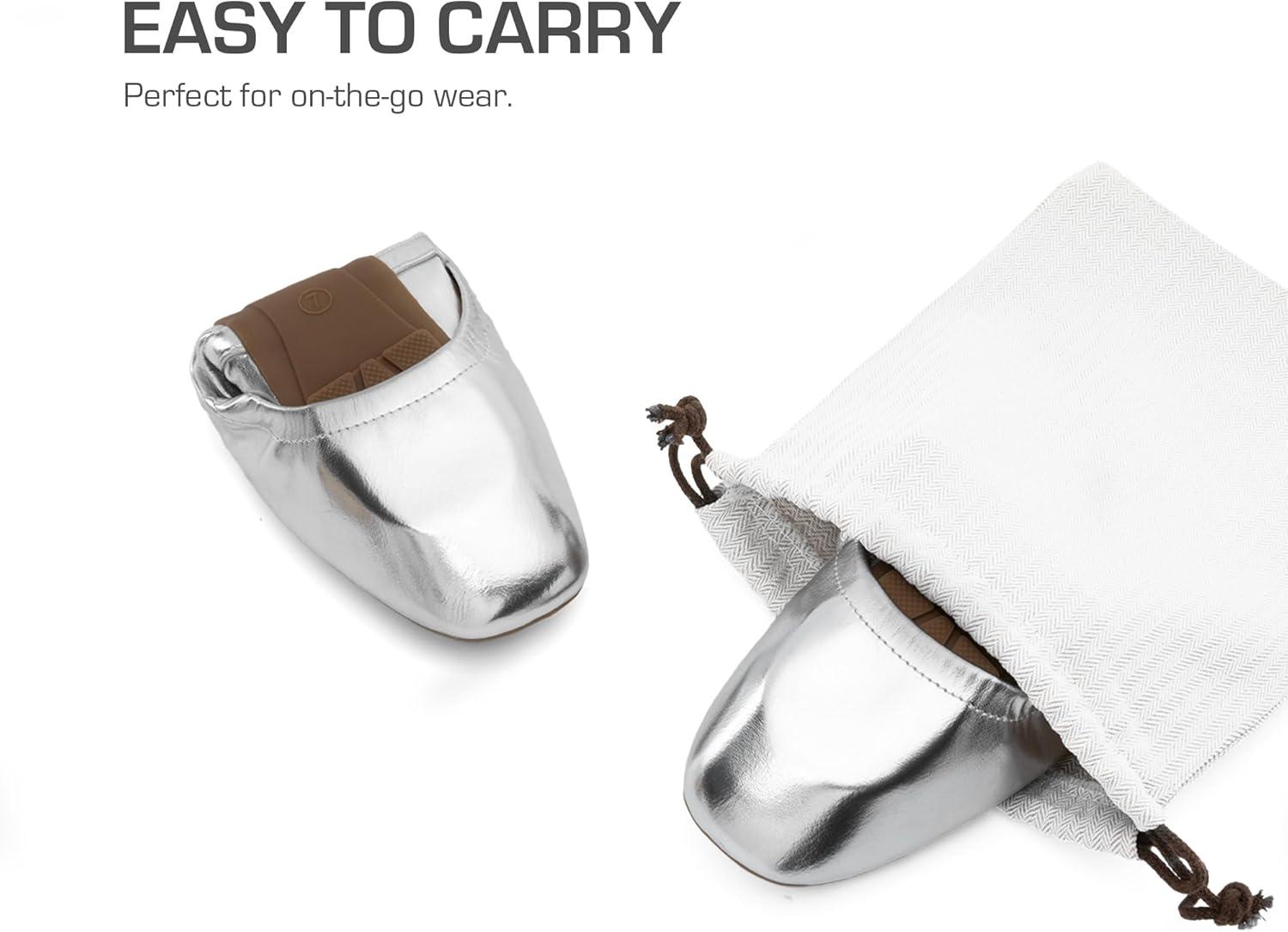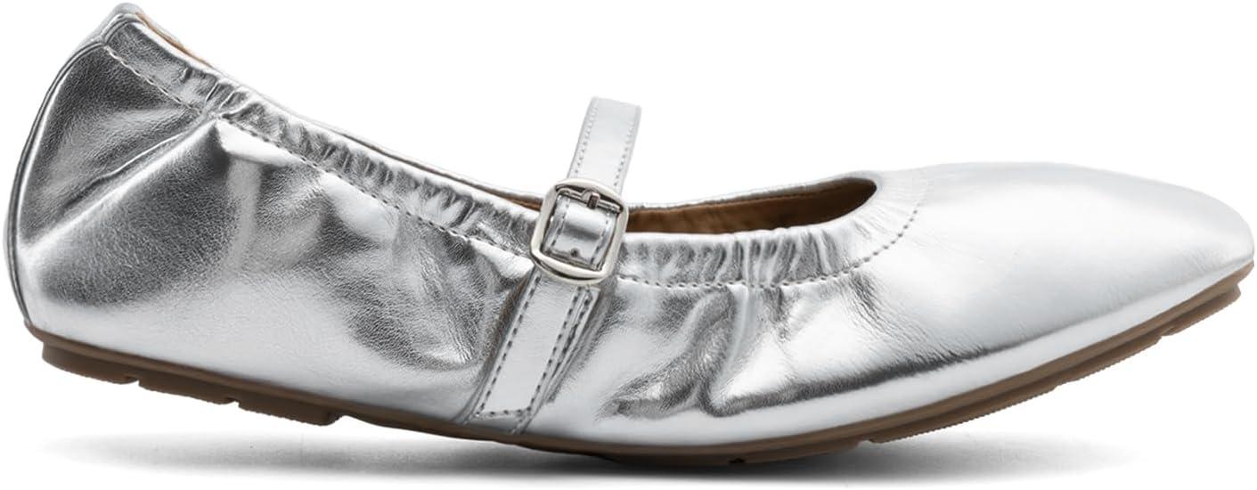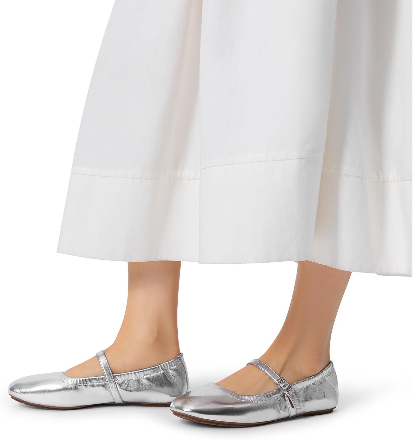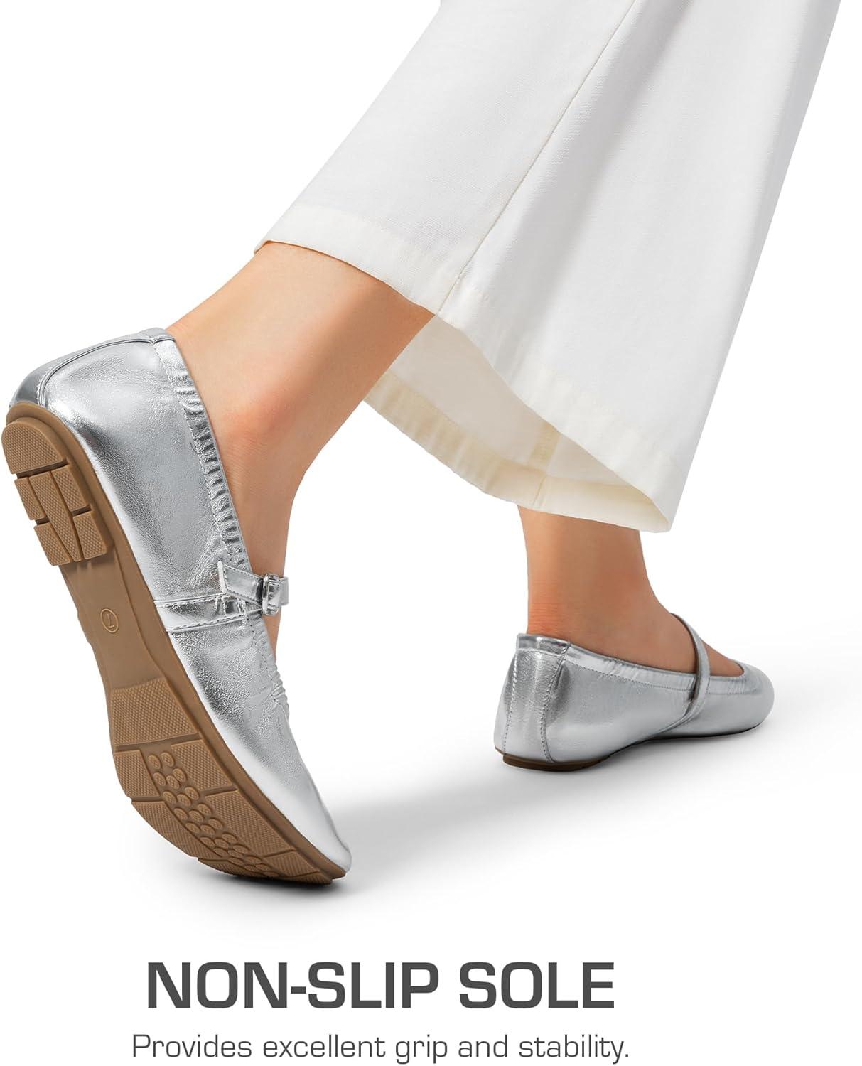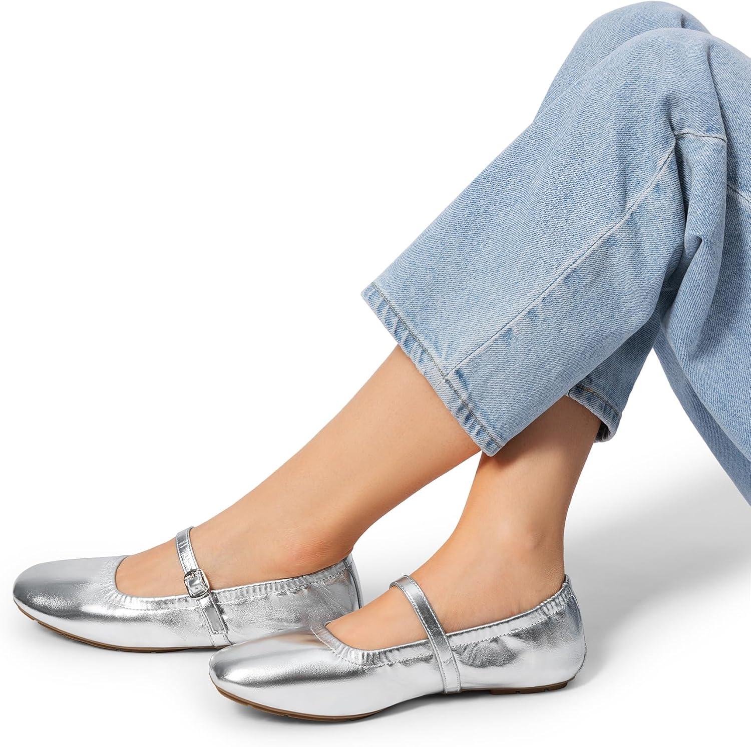 DREAM PAIRS Women's Ballet Flats Foldable Square Toe Mary Jane Flats Comfortable Slip On Dress Shoes Business Casual Work Mary Jane Shoes(Silver)