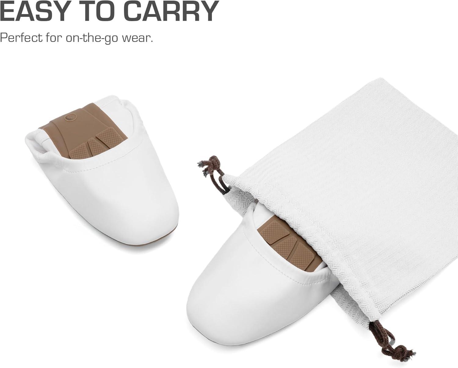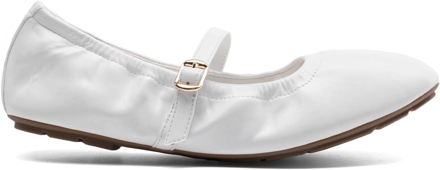 DREAM PAIRS Women's Ballet Flats Foldable Square Toe Mary Jane Flats Comfortable Slip On Dress Shoes Business Casual Work Mary Jane Shoes(White)