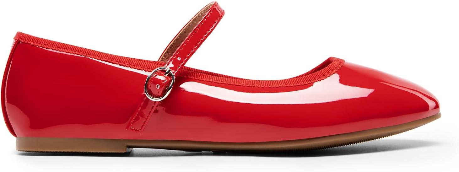 DREAM PAIRS Women’s Ballet Flats Mary Jane Shoes, Round Toe Comfortable Dressy Casual Slip-on Work Daily Soft Flat Shoes(Red-pat)