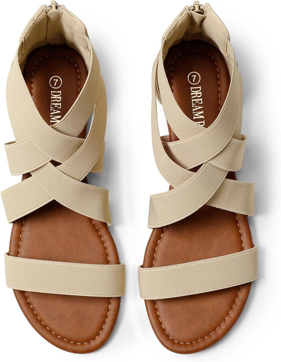 DREAM PAIRS Women’s Elastic Ankle Strap Low Wedges Sandals(Nude)