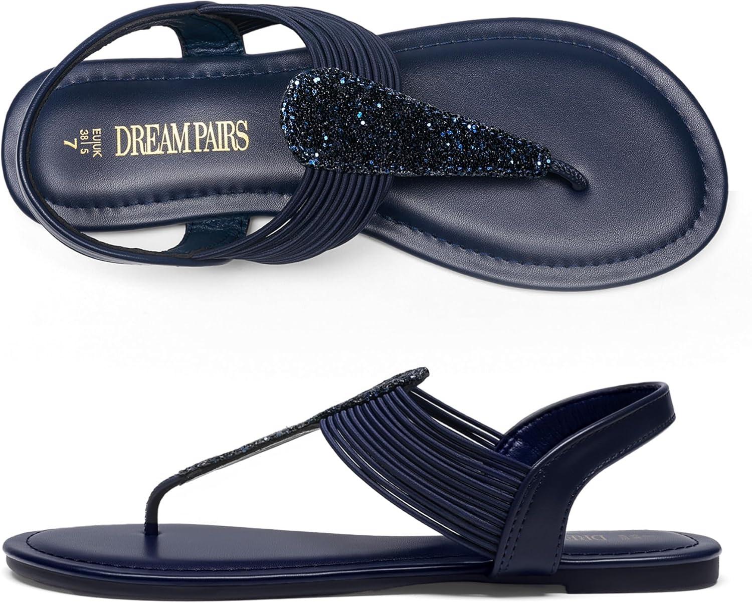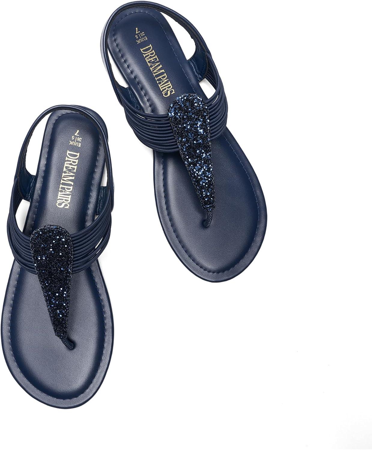 imageDREAM PAIRS Womens Elastic Strappy String Thong Ankle Strap Summer Gladiator SandalsNavy