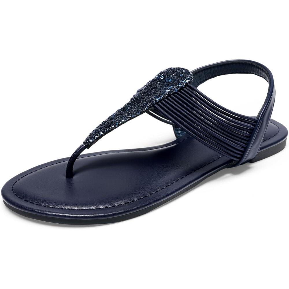 DREAM PAIRS Women’s Elastic Strappy String Thong Ankle Strap Summer Gladiator Sandals(Navy)