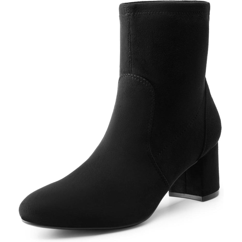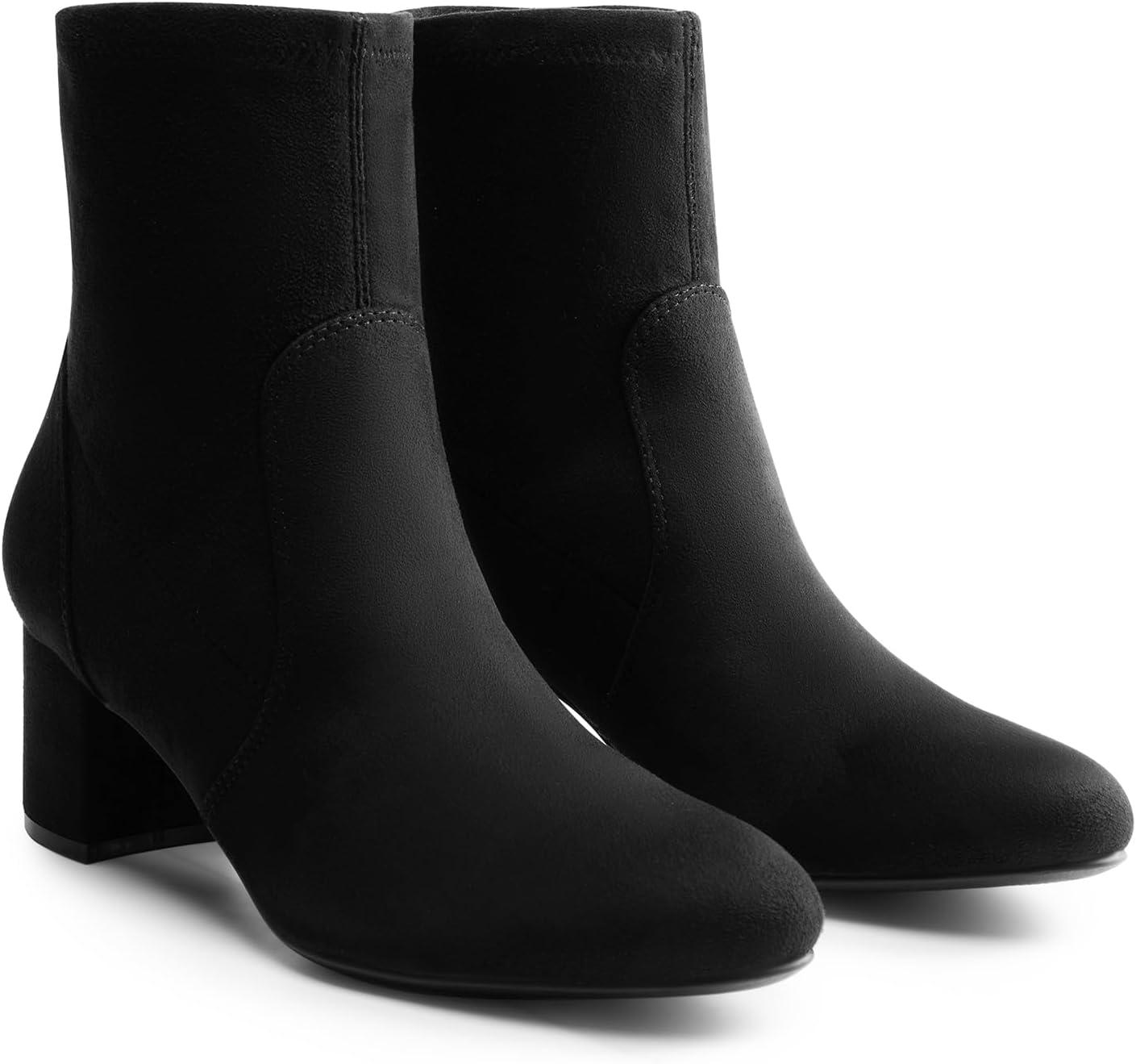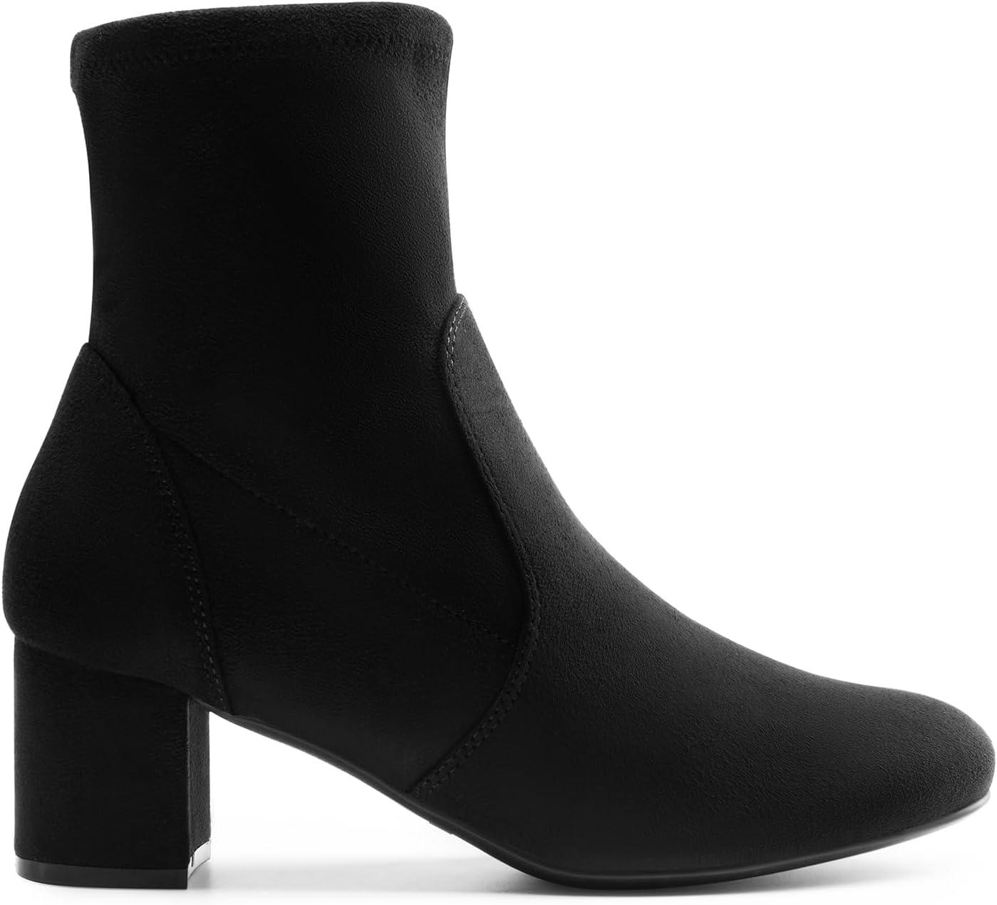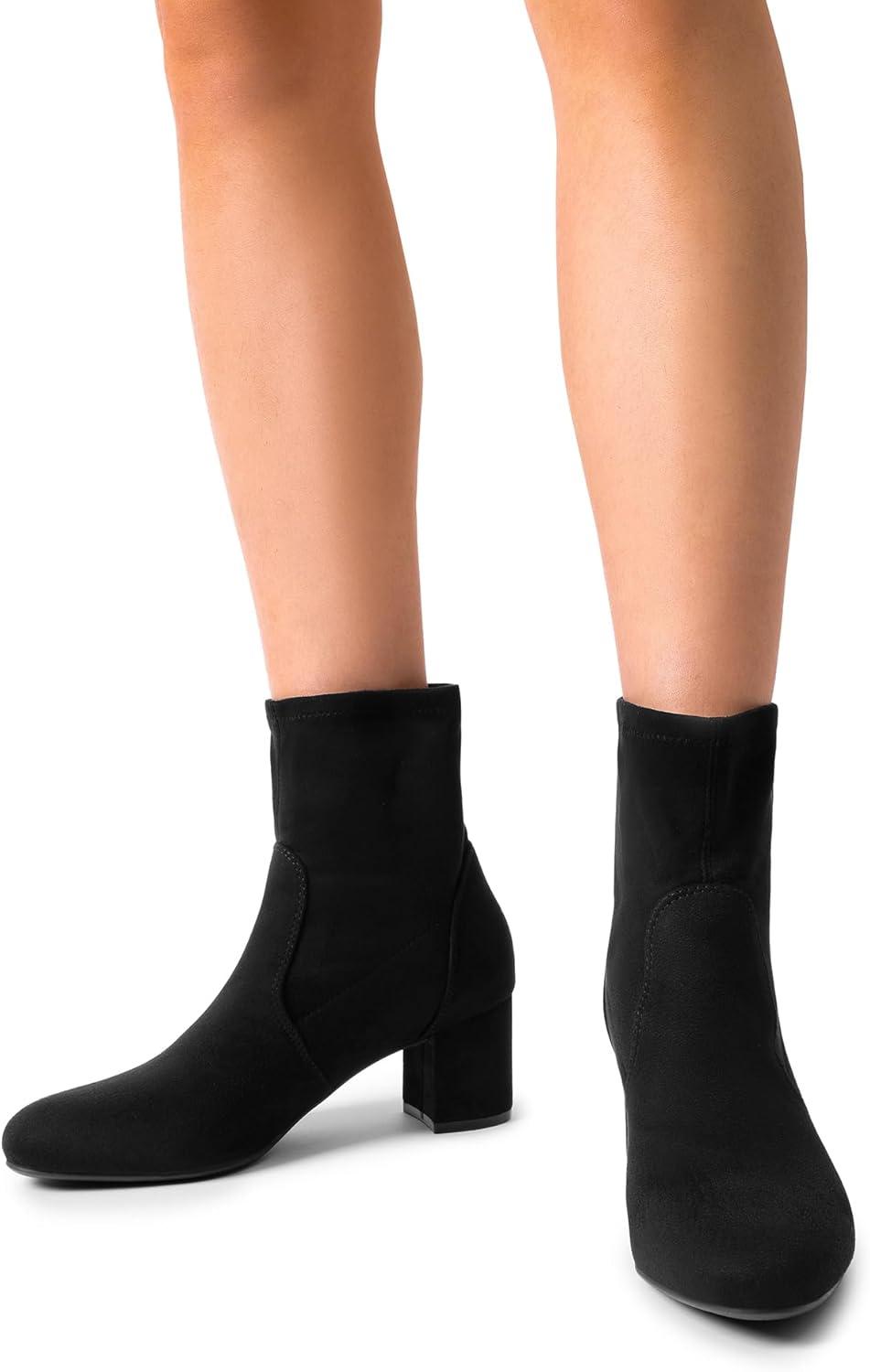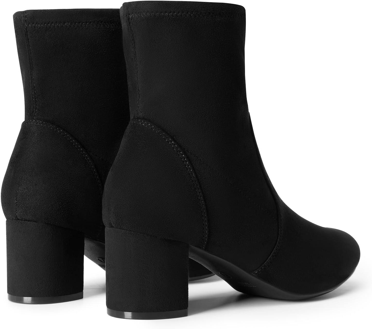 DREAM PAIRS Women's Fitted Stretch Ankle Boots Fashion Low Chunky Heel Almond Toe Fall Heeled Booties Shoes(Black-suede)