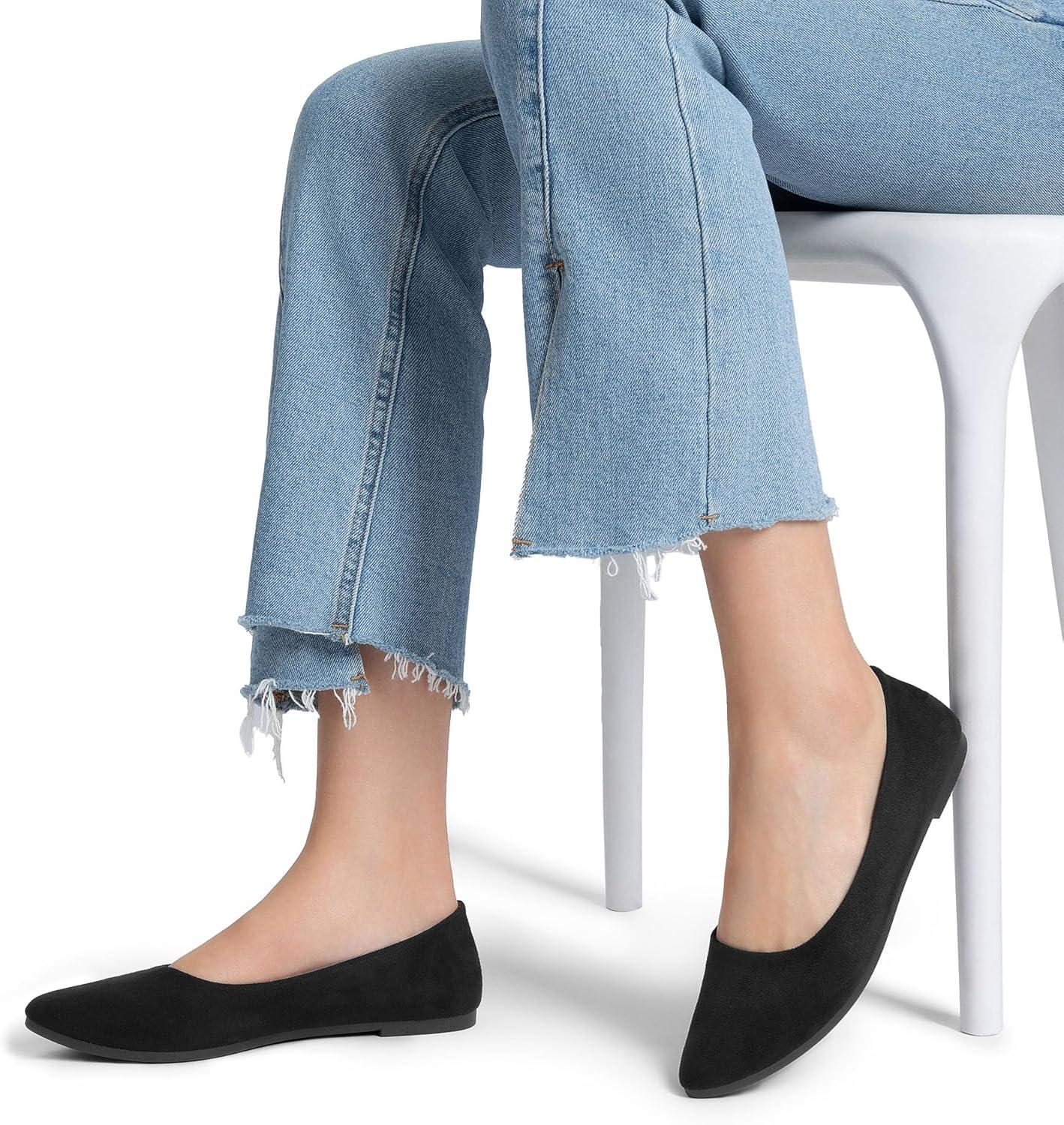 DREAM PAIRS Women’s Flats Comfortable Slip On Business Work Office Casual Suede Ballet Flats Pointed Toe Dress Shoes(Black)