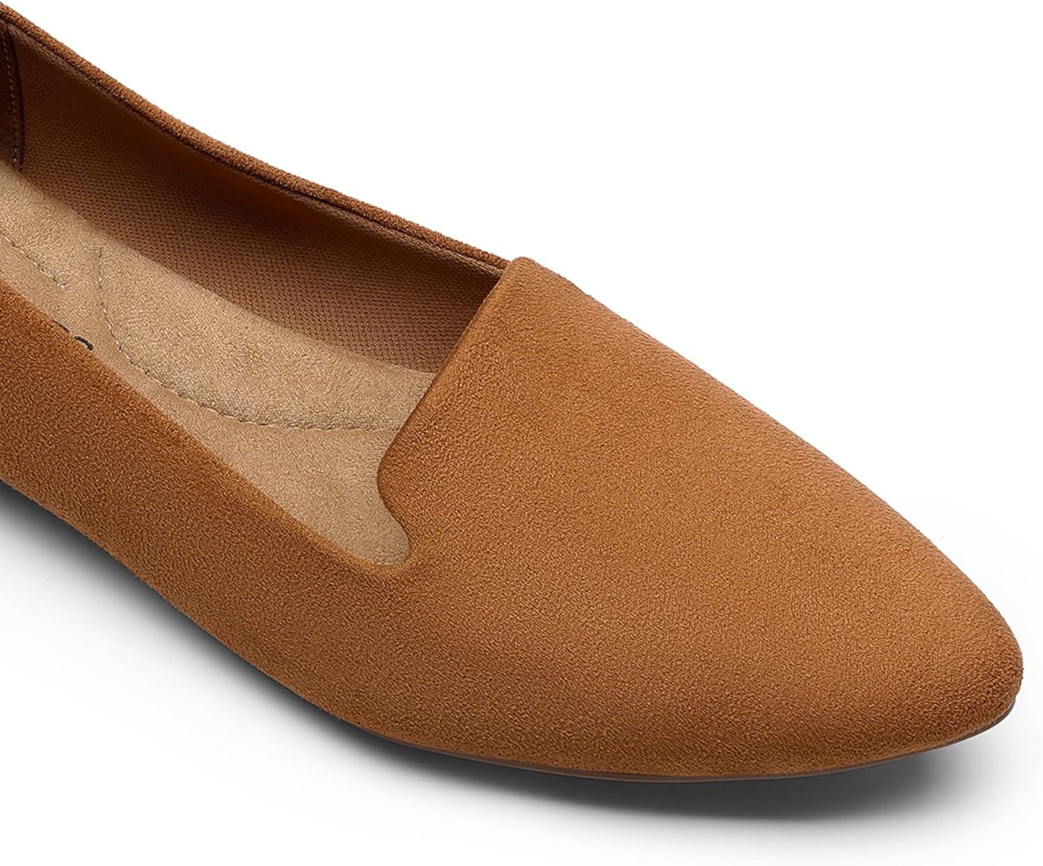 DREAM PAIRS Women's Flats, Pointed Toe Slip-On Dressy Flat Shoes, Comfortable Business Casual Dress Shoes for Office Work(Brown)