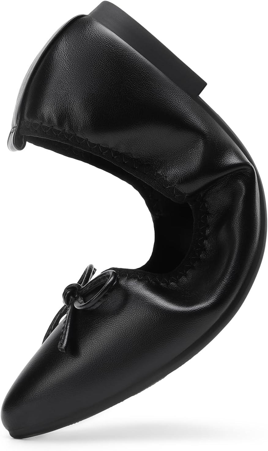 DREAM PAIRS Women's Foldable Flats Shoes Pointed Toe Ballet Flats Bowknot Comfort Slip on Dress Shoes(Black)