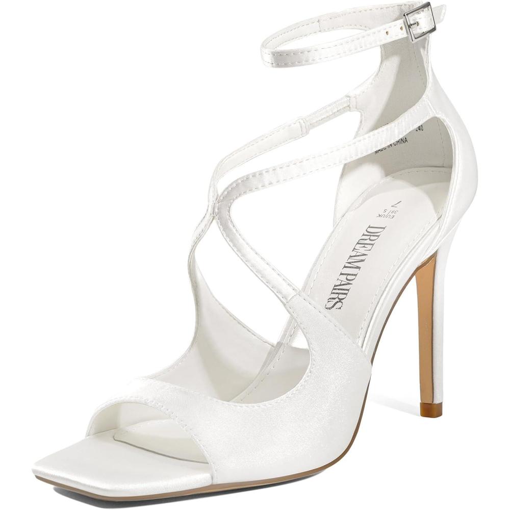 DREAM PAIRS Women's High Heels Sexy Cross Square Open Toe Strappy Dressy Sexy Stylish Stilettos Heels Sandals(White-satin)