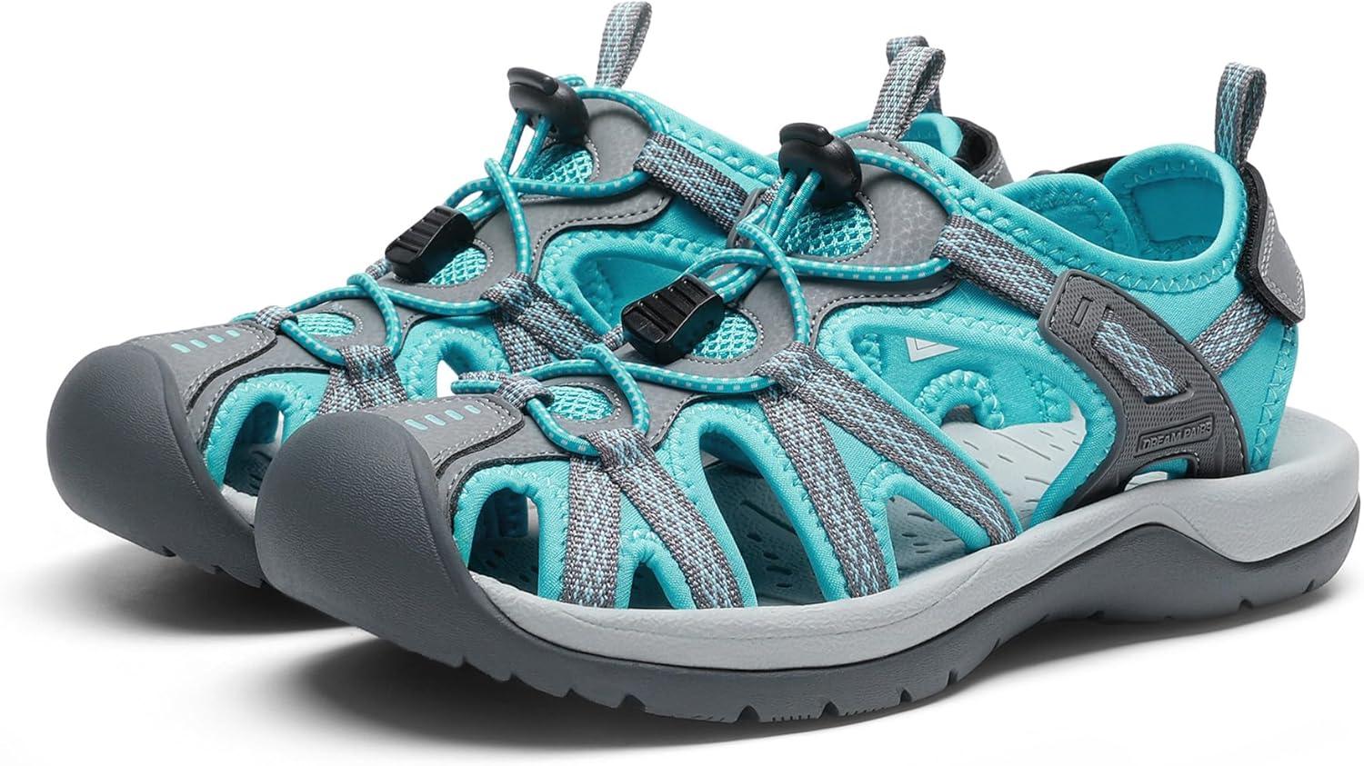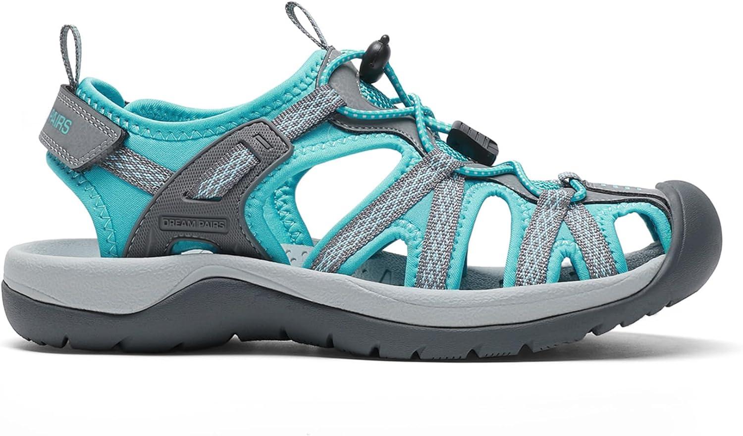 DREAM PAIRS Women’s Hiking Sandals Adventurous Summer Sports Shoes Outdoor(Grey/Blue)